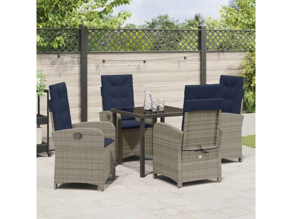 Zahradní jídelní souprava s polštářem 5 pcs Šedá polyratan 3380352