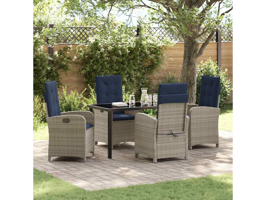 Zahradní jídelní souprava s polštářem 5 pcs Šedá polyratan 3380353