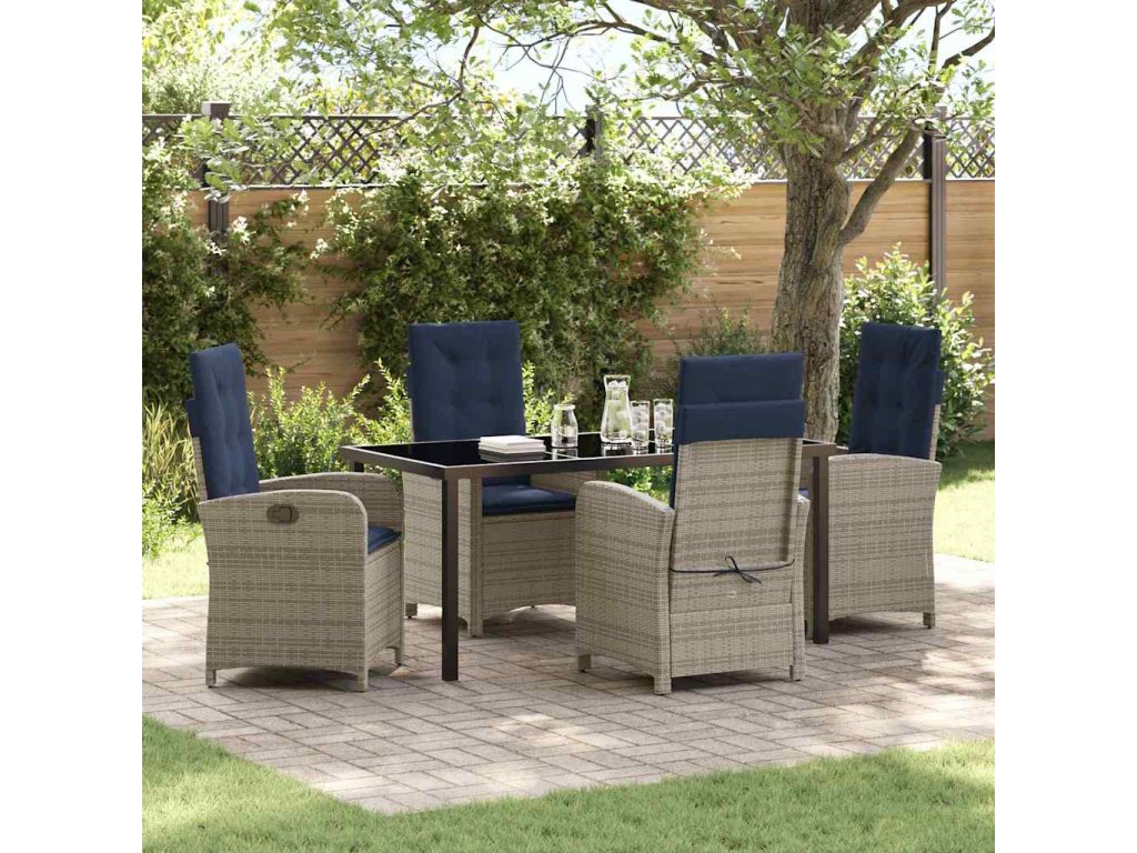 Zahradní jídelní souprava s polštářem 5 pcs Šedá polyratan 3380354