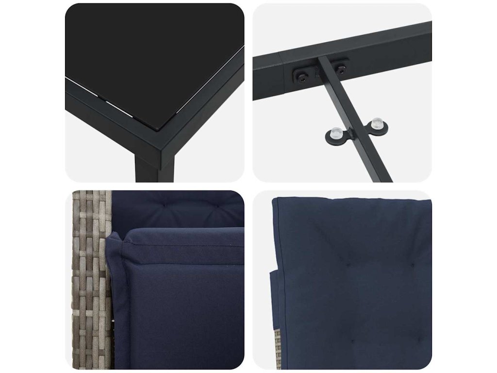 - Součásti v ceně: Obsahuje stůl se skleněnou deskou a pohodlná polstrovaná sedačky pro skvělé posezení na akce. Poly ratan a ocelové rámy zaručují stabilitu a komfort.