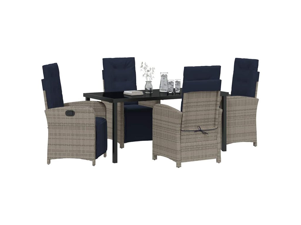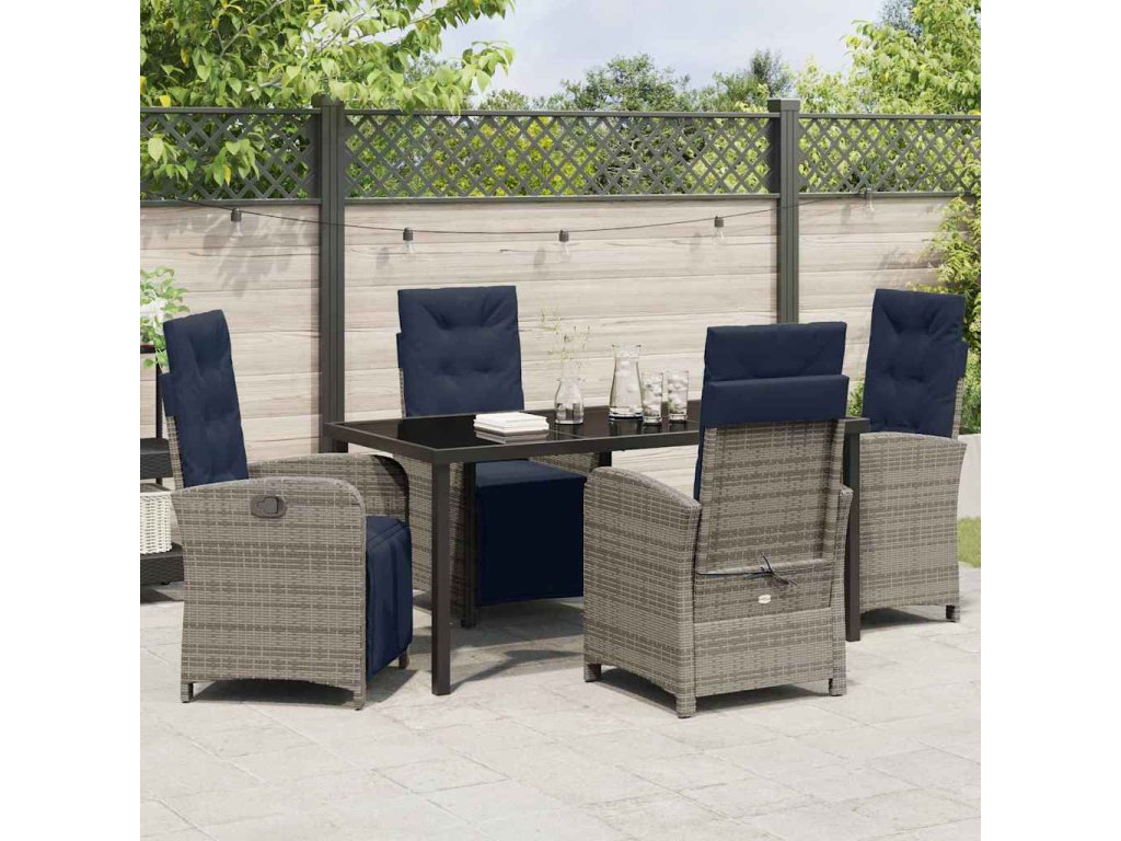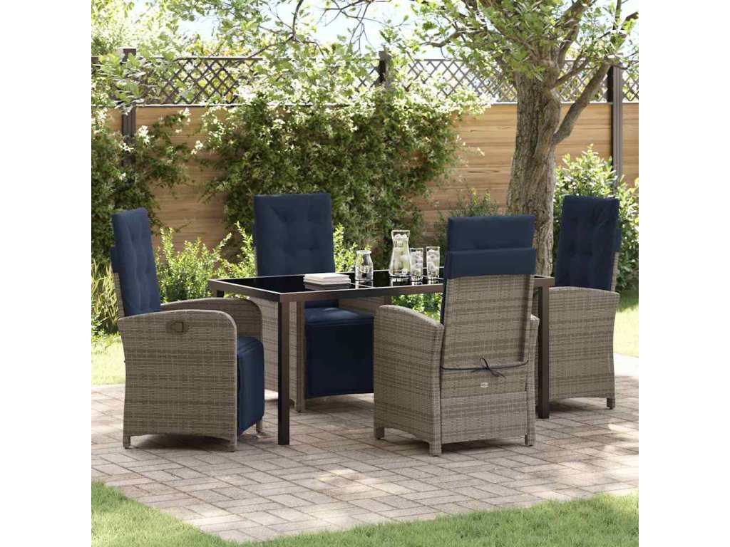 Zahradní jídelní souprava s polštářem 5 pcs Šedá polyratan 3380361