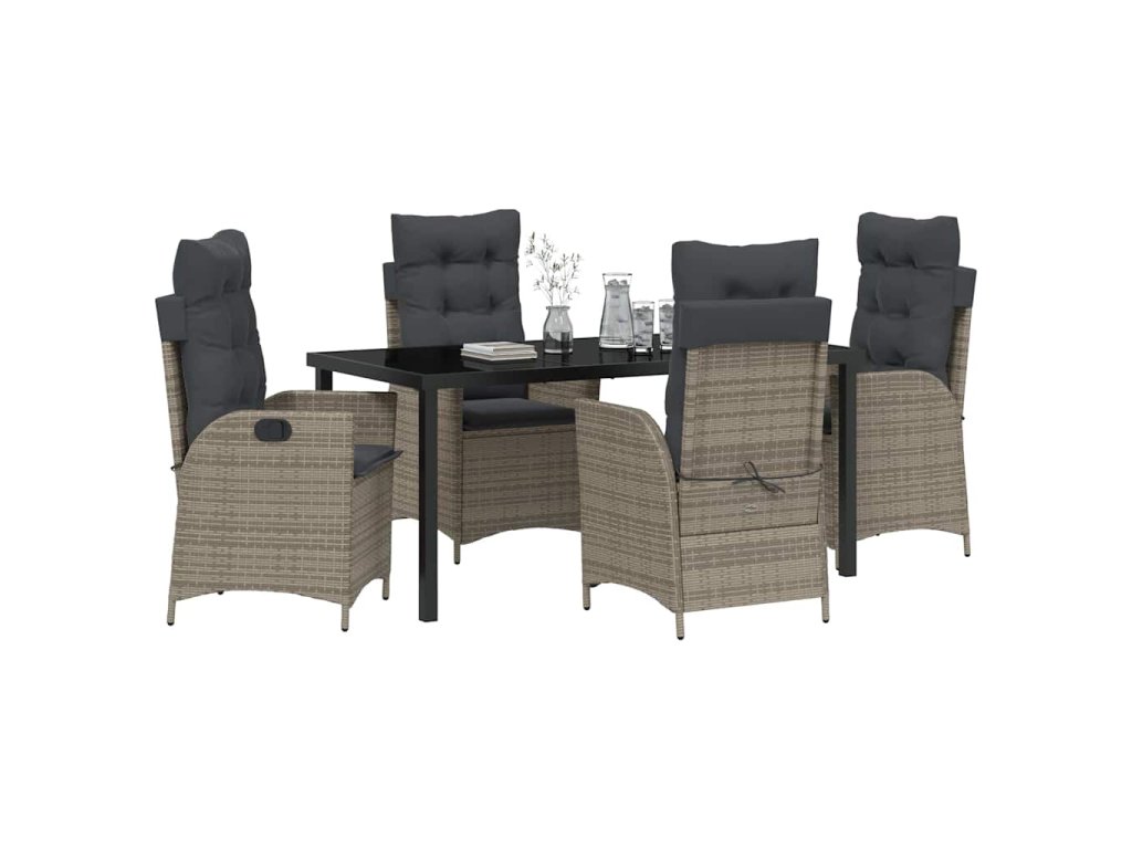 Zahradní jídelní souprava s polštářem 5 pcs Šedá polyratan 3380501