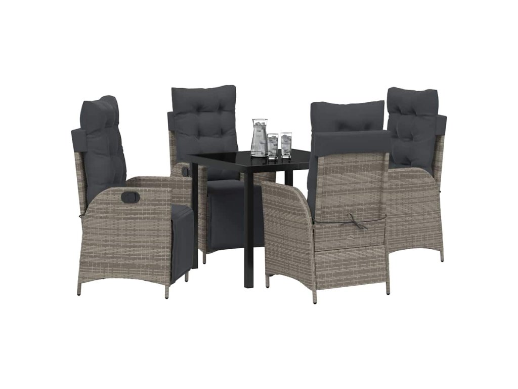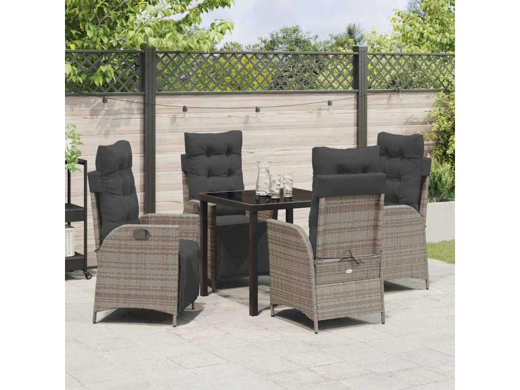 Zahradní jídelní souprava s polštářem 5 pcs Šedá polyratan 3380548