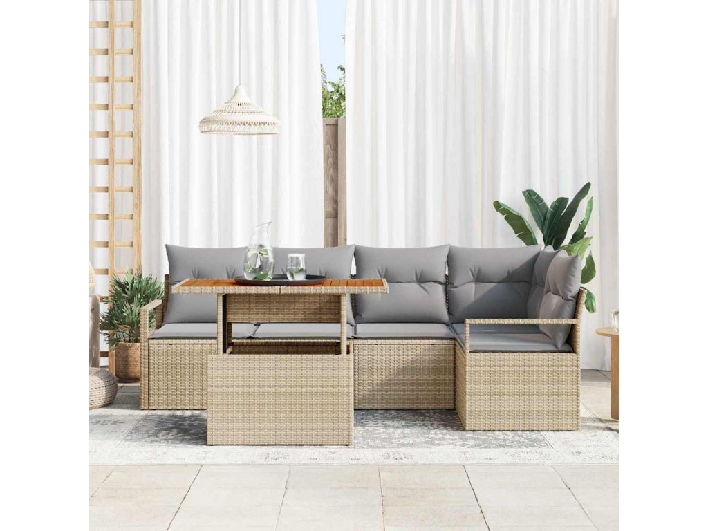 Zahradní jídelní souprava s polštářem 6 pcs Beige a šedá 3349713