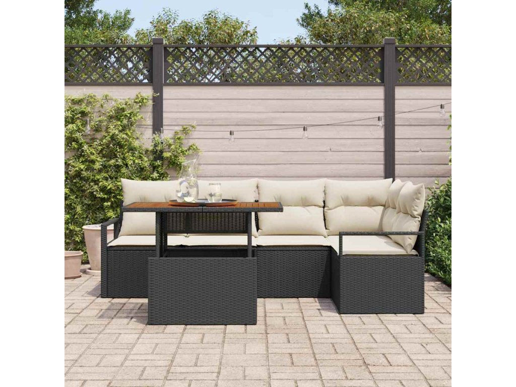 Zahradní jídelní souprava s polštářem 6 pcs Černá a krémová 3349711