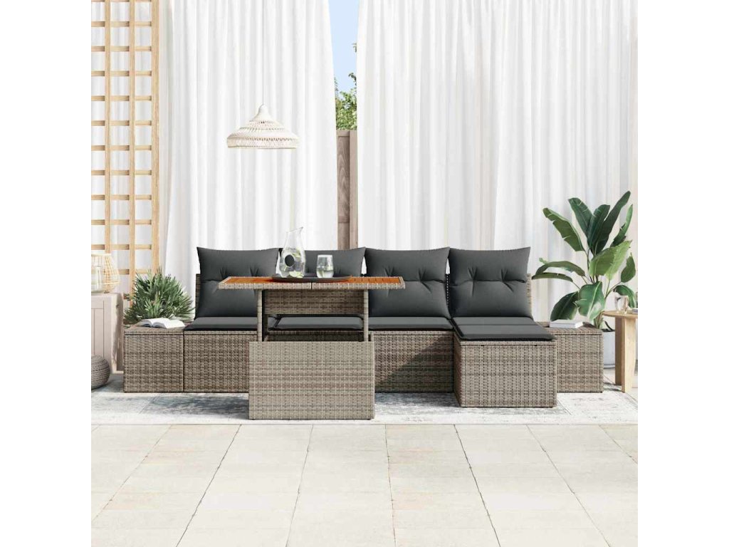 Zahradní jídelní souprava s polštářem 6 pcs Šedá a hnědá 3349950