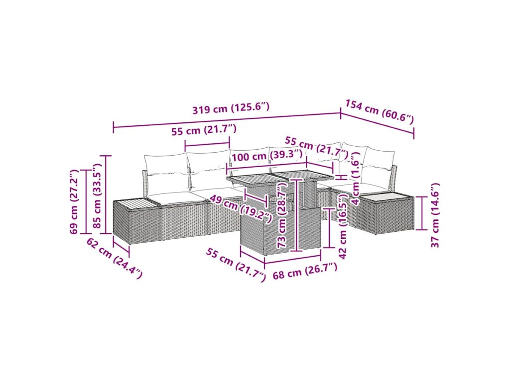 - Stylové doplňky Spolu s čtvercovými opěrkami a měkkými sedacími poduškami vyplněnými pěnou, tento set zajišťuje pohodlí spojované se stylem. Užijte si uvolněné konverzace nebo příjemné čtení s dostatečným prostorem pro každého pozvaného hosta.