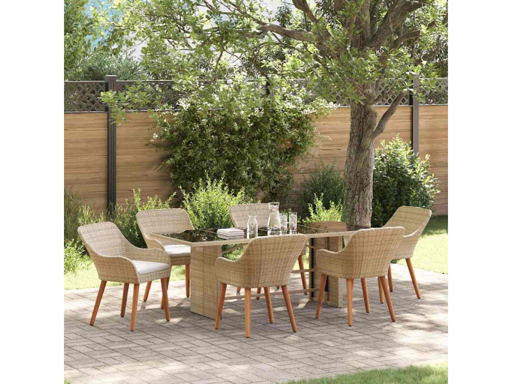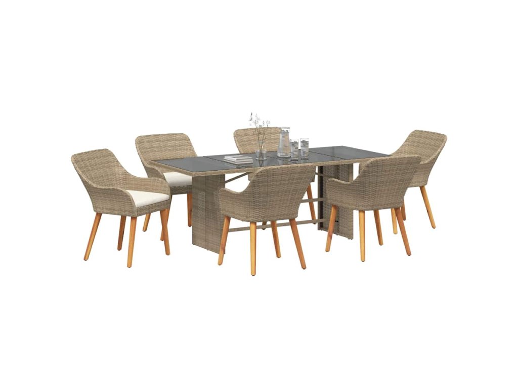 Zahradní jídelní souprava s polštářem 7 pcs Béžová polyratan 3261629