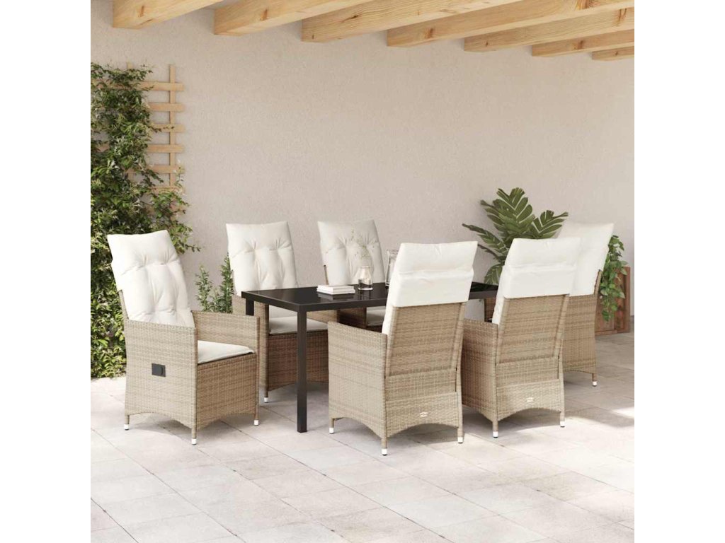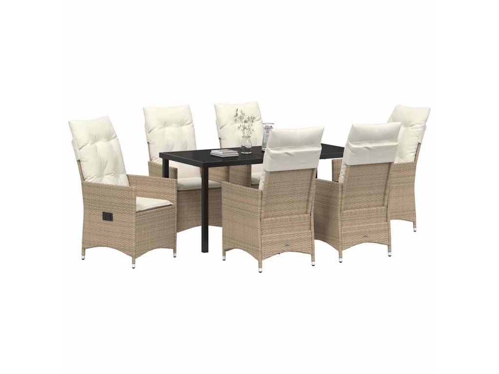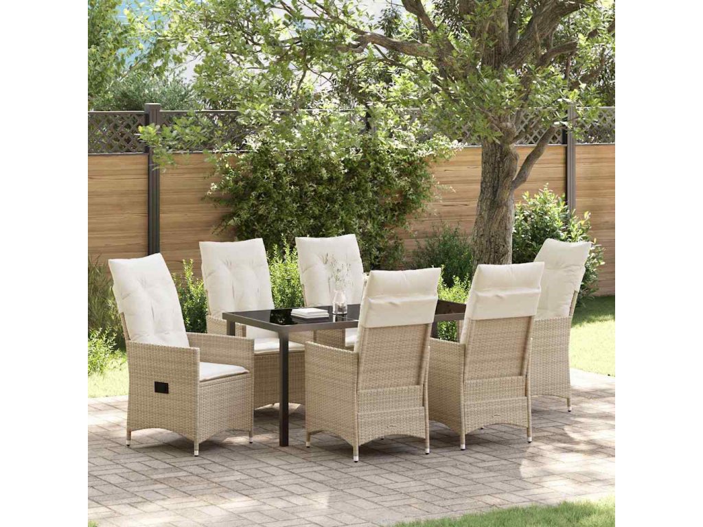 Zahradní jídelní souprava s polštářem 7 pcs Béžová polyratan 3379559