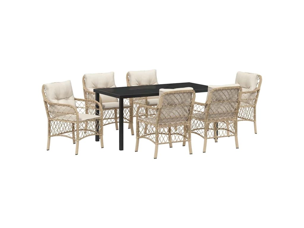 Zahradní jídelní souprava s polštářem 7 pcs Béžová polyratan 3380229
