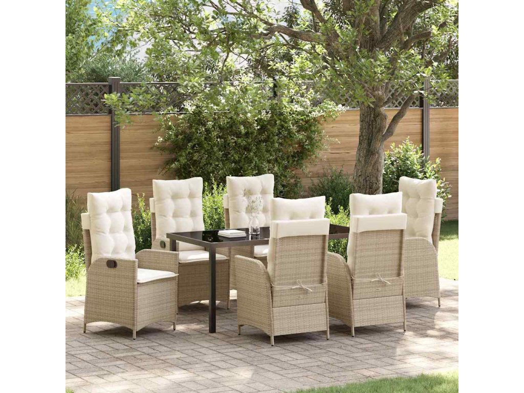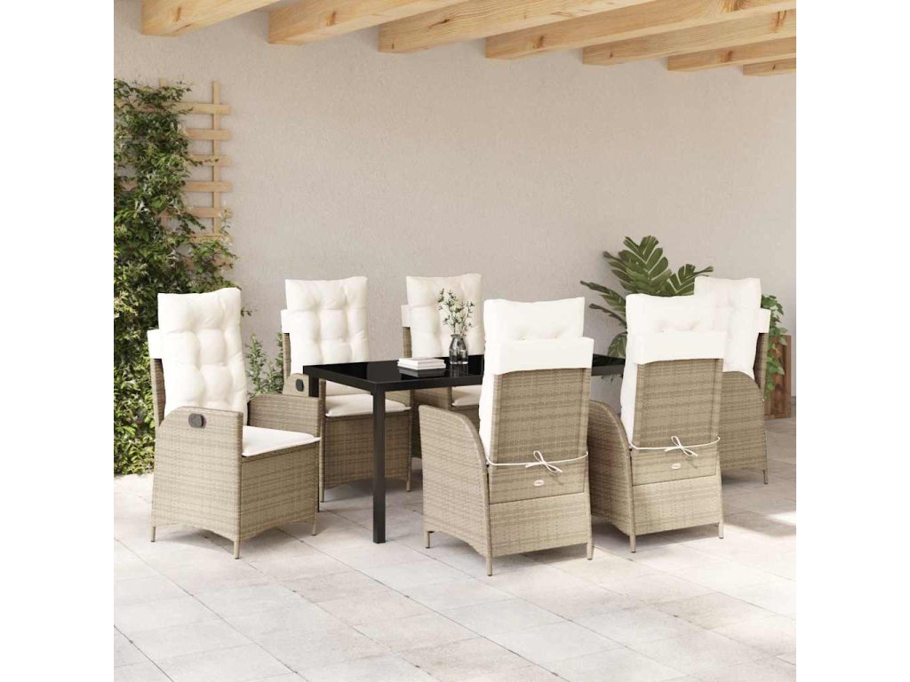 Zahradní jídelní souprava s polštářem 7 pcs Béžová polyratan 3380509