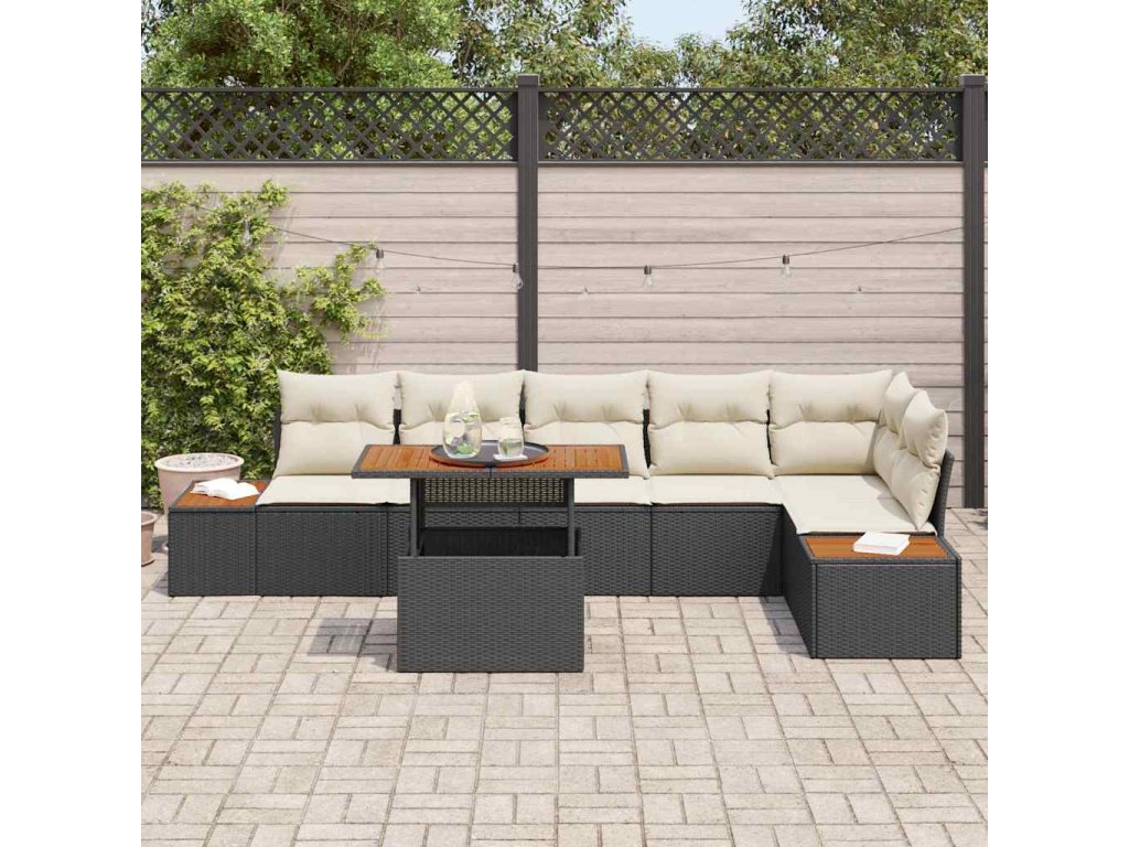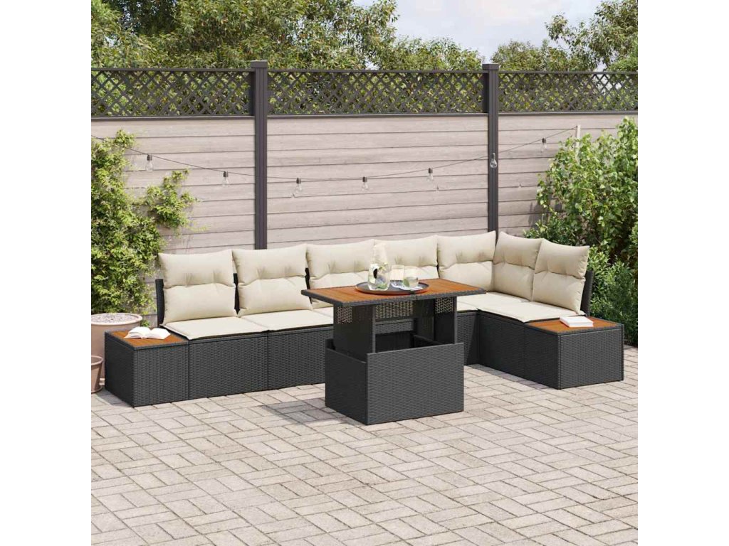Zahradní jídelní souprava s polštářem 7 pcs Černá a béžová 3350074