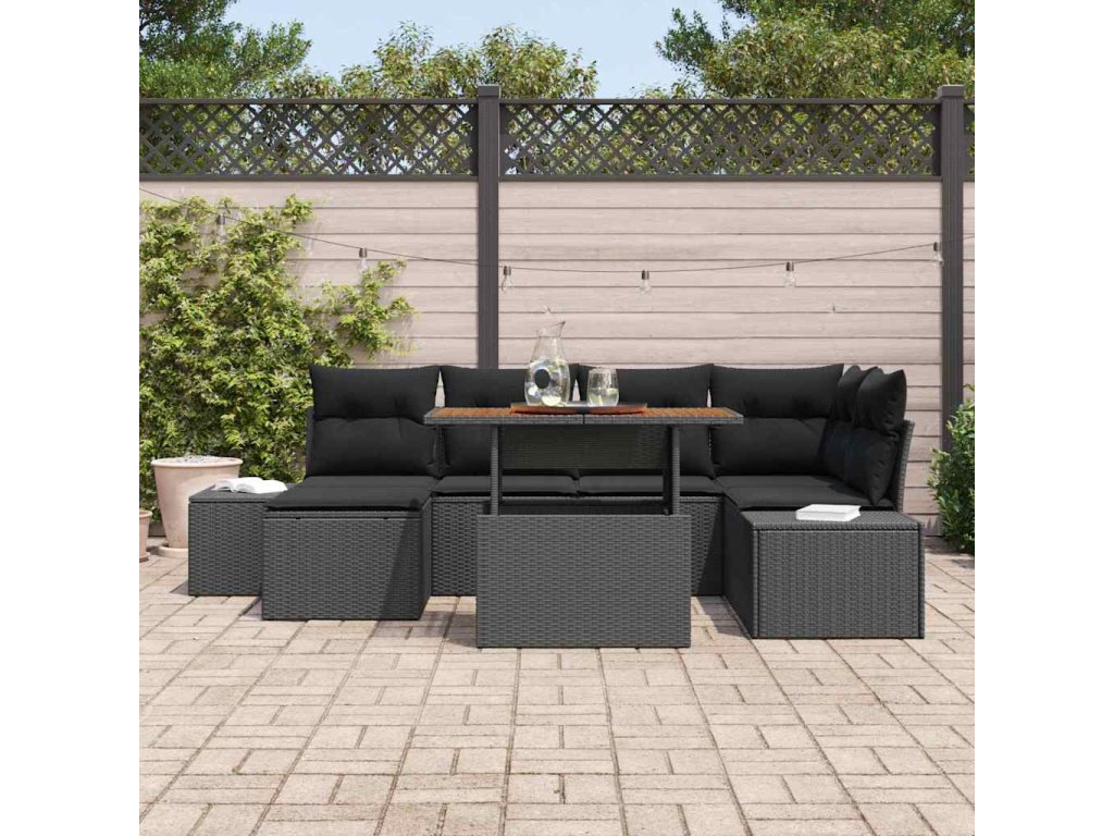 Zahradní jídelní souprava s polštářem 7 pcs Černá a hnědá 3349988