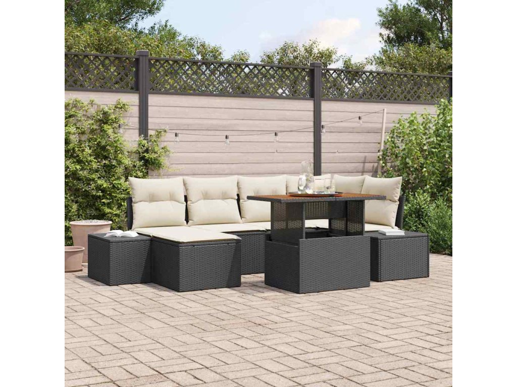 Zahradní jídelní souprava s polštářem 7 pcs Černá a krémová 3349984