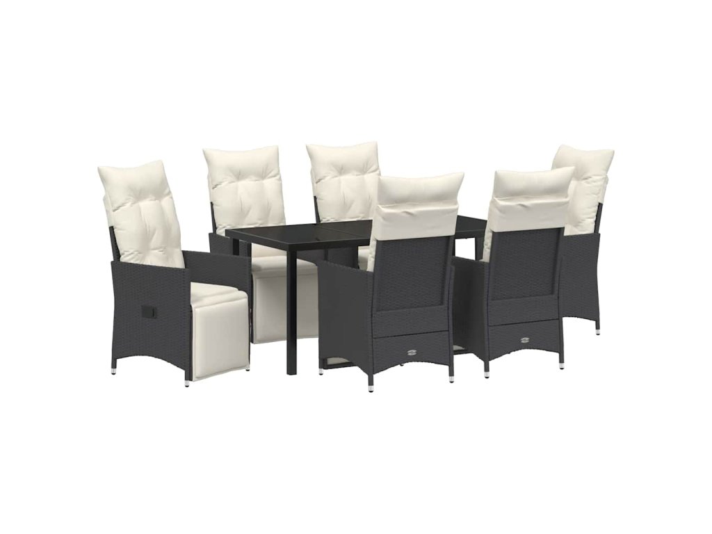 Zahradní jídelní souprava s polštářem 7 pcs Černá Poly ratan 3379566