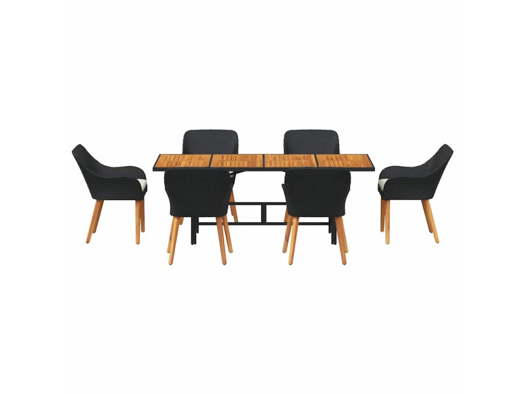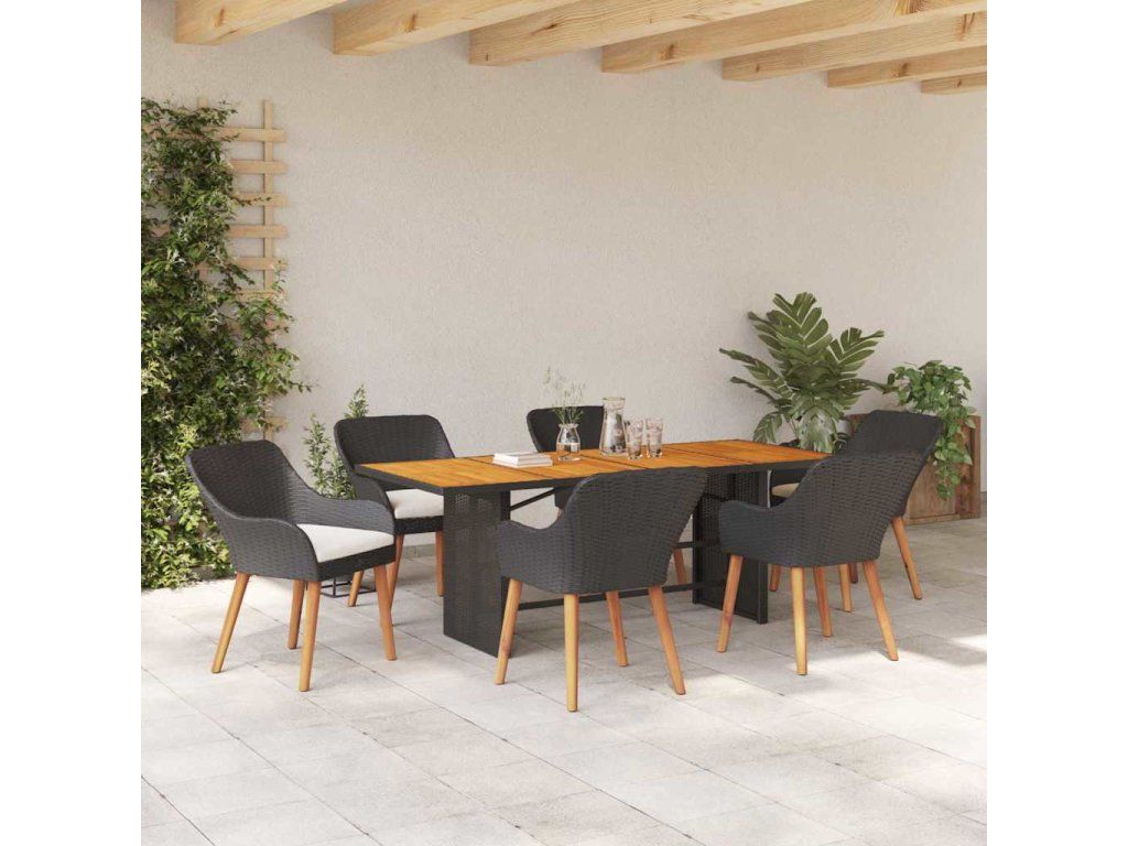 Zahradní jídelní souprava s polštářem 7 pcs Černá polyratan 3261623