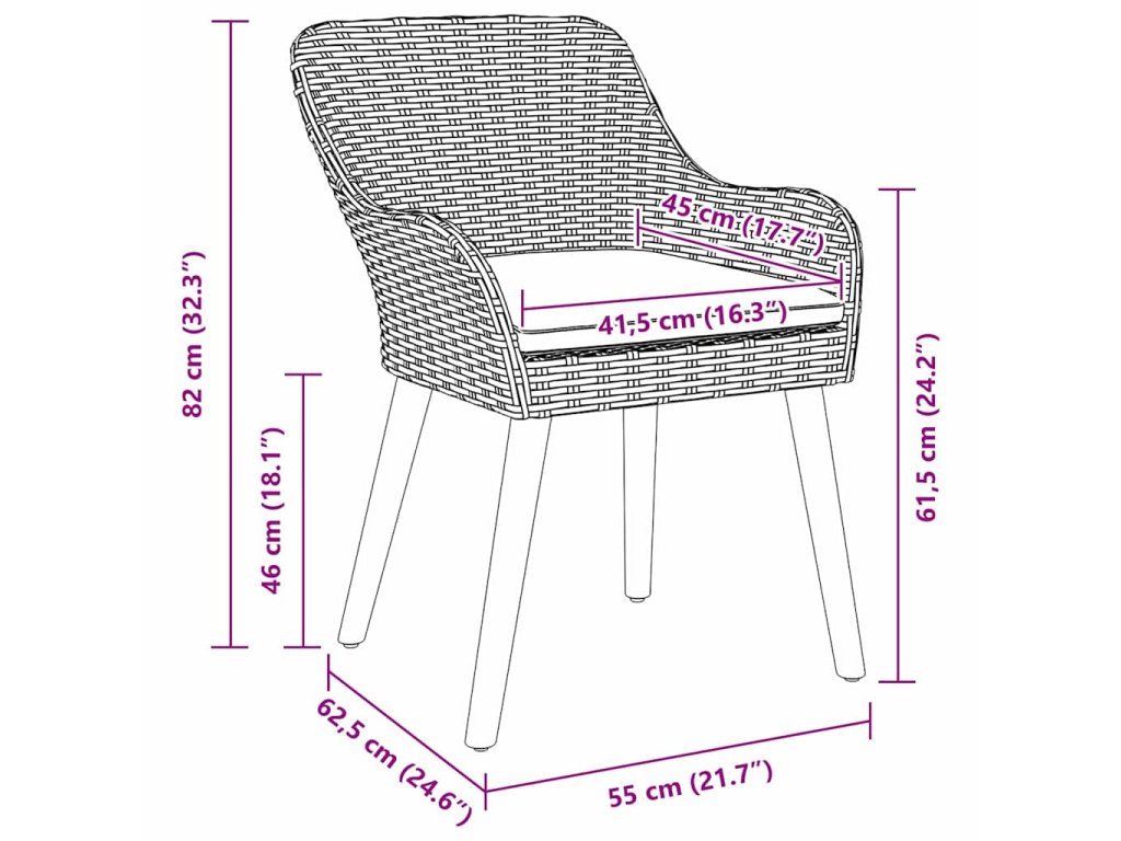 - 6 x Zahradní židle: 62,5 x 55 x 82 cm (D x Š x V)