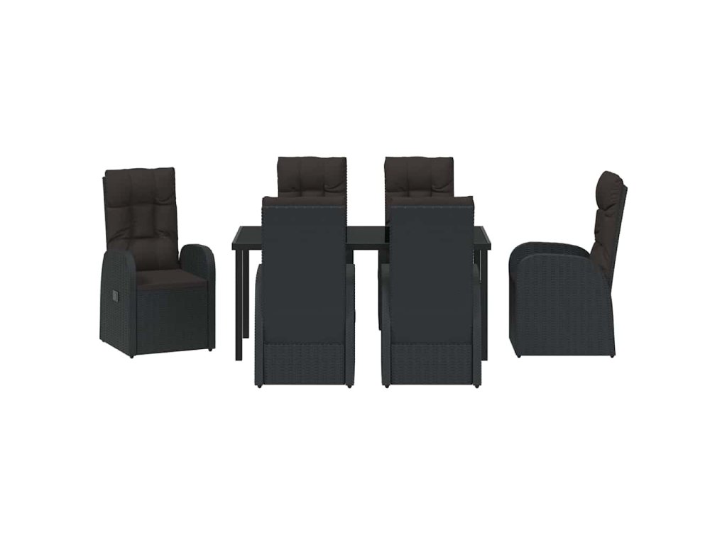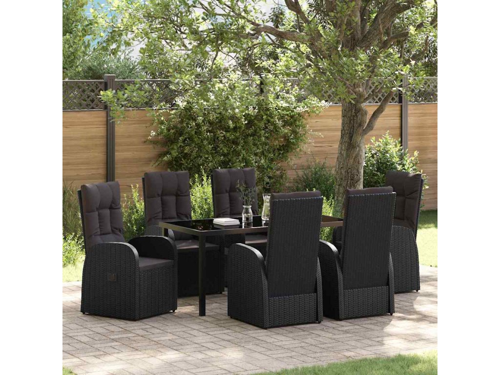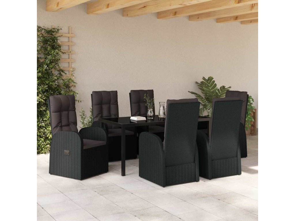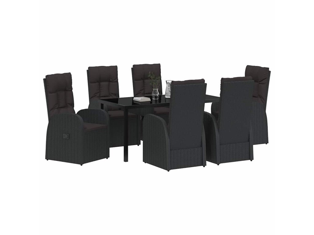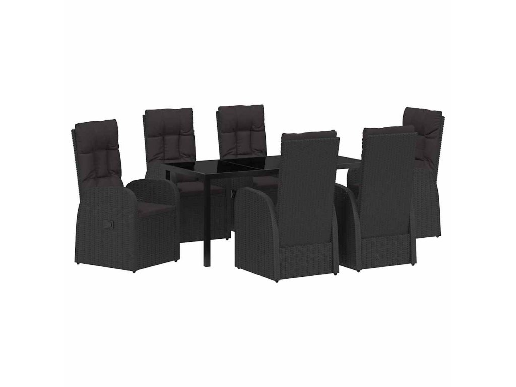 Zahradní jídelní souprava s polštářem 7 pcs Černá polyratan 3379510