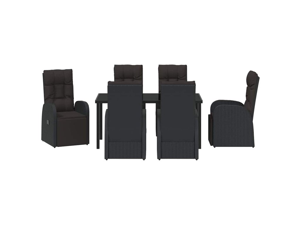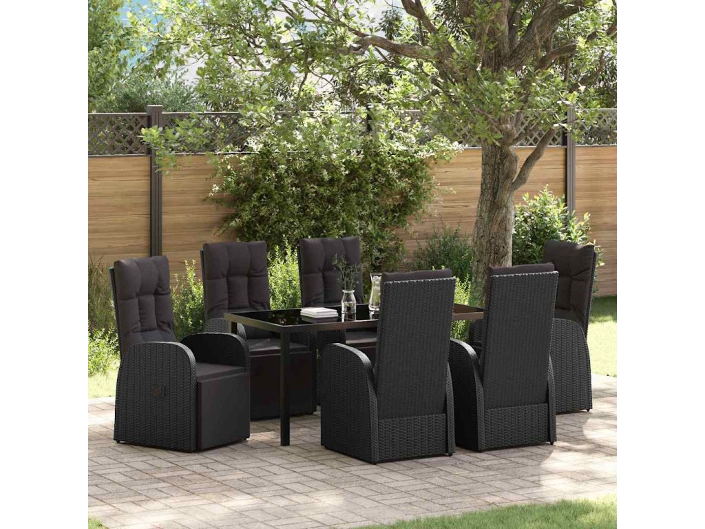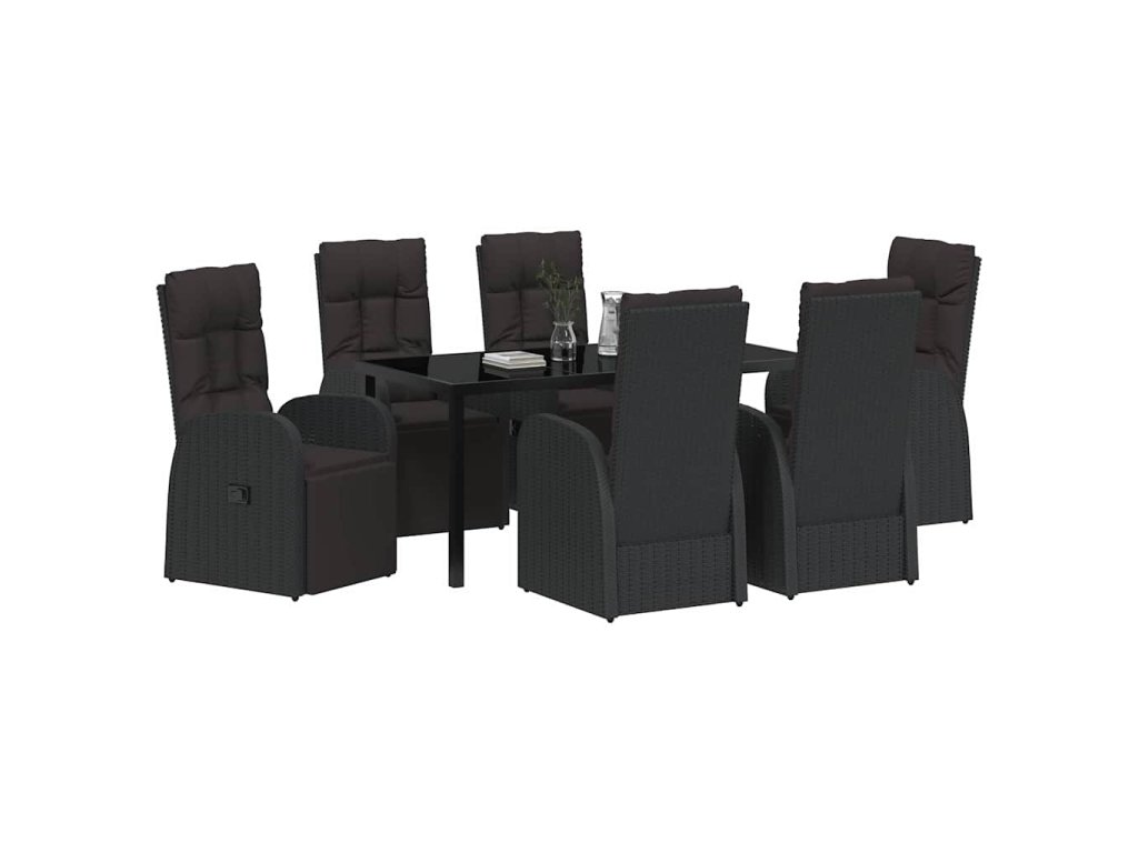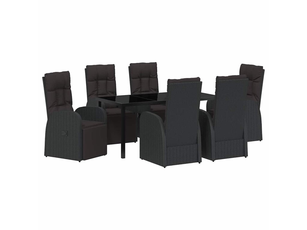 Zahradní jídelní souprava s polštářem 7 pcs Černá polyratan 3379517