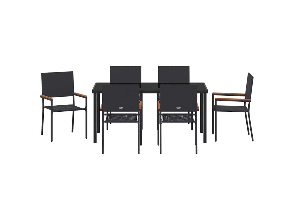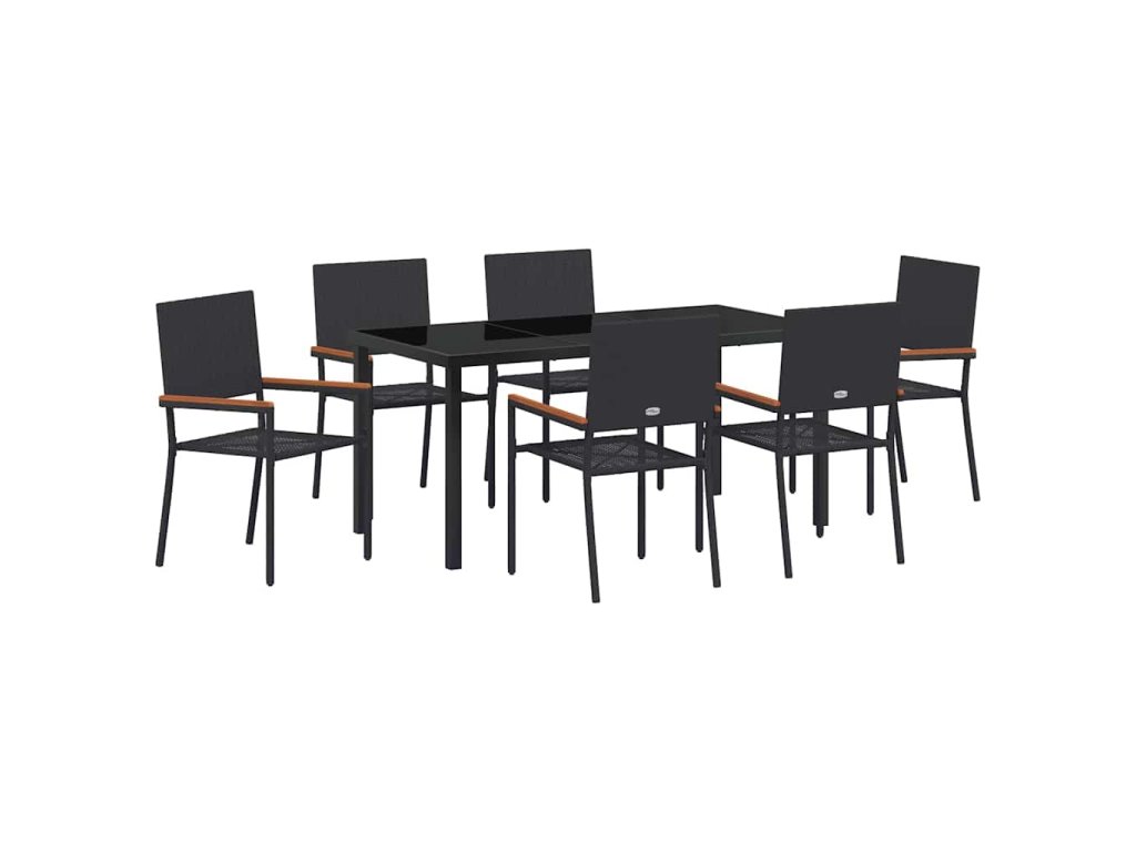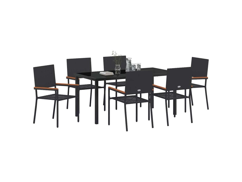 Zahradní jídelní souprava s polštářem 7 pcs Černá polyratan 3379706
