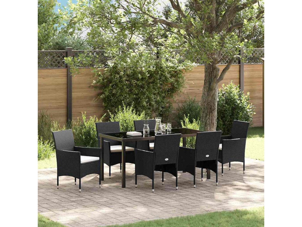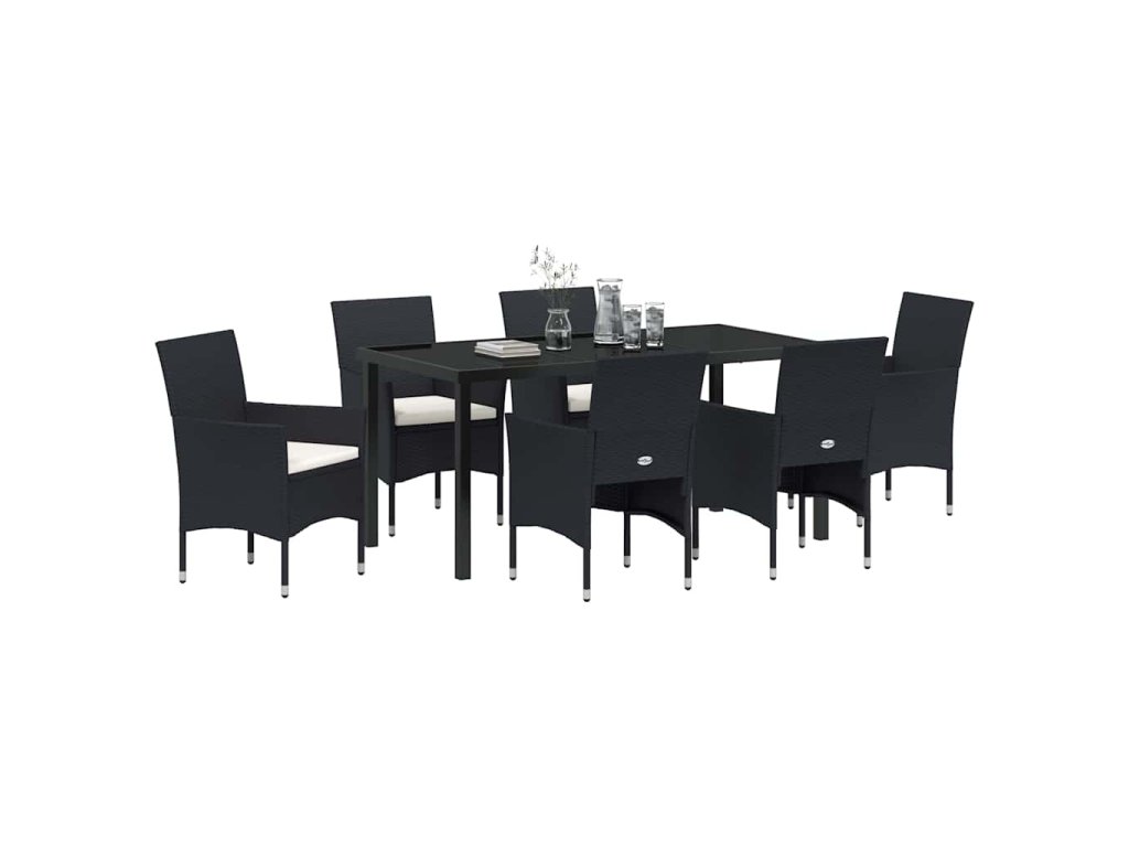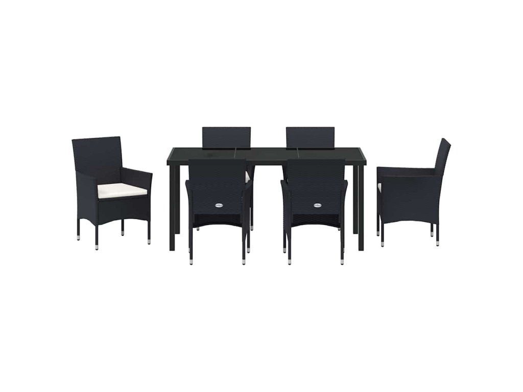 Zahradní jídelní souprava s polštářem 7 pcs Černá polyratan 3379727