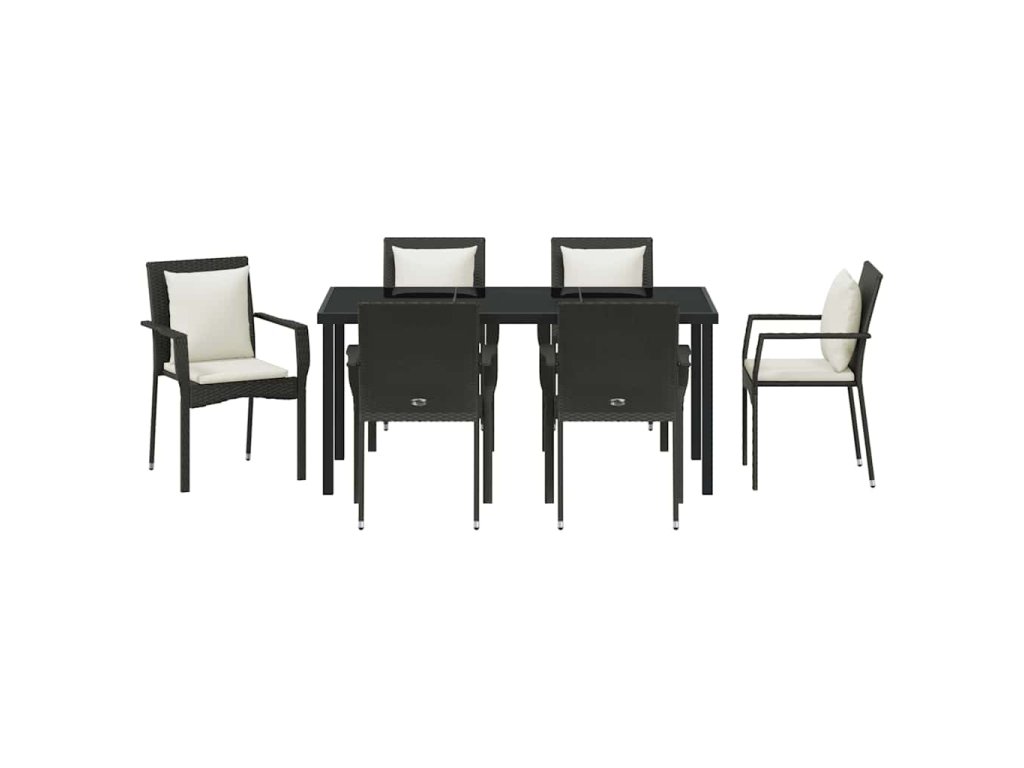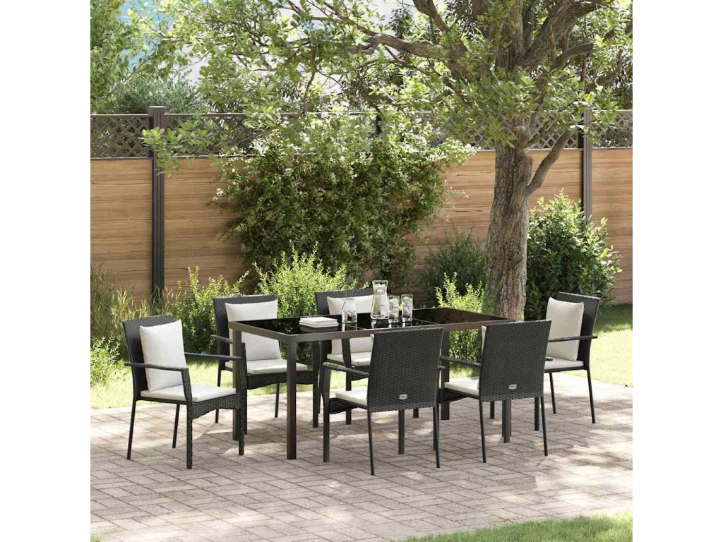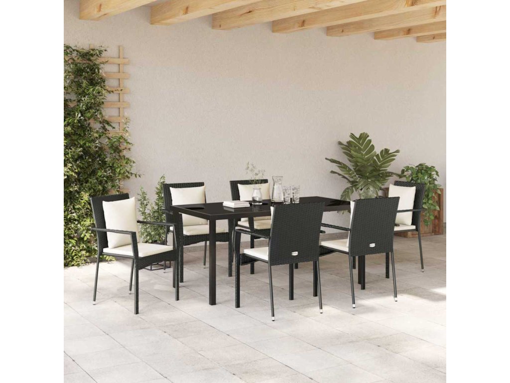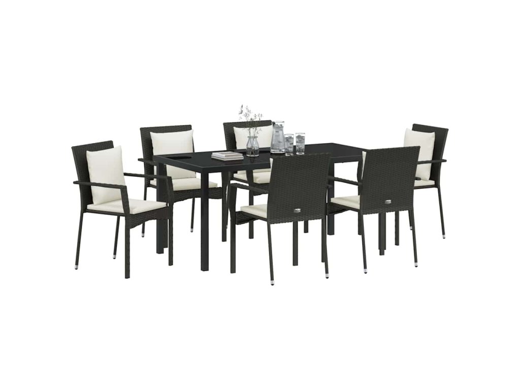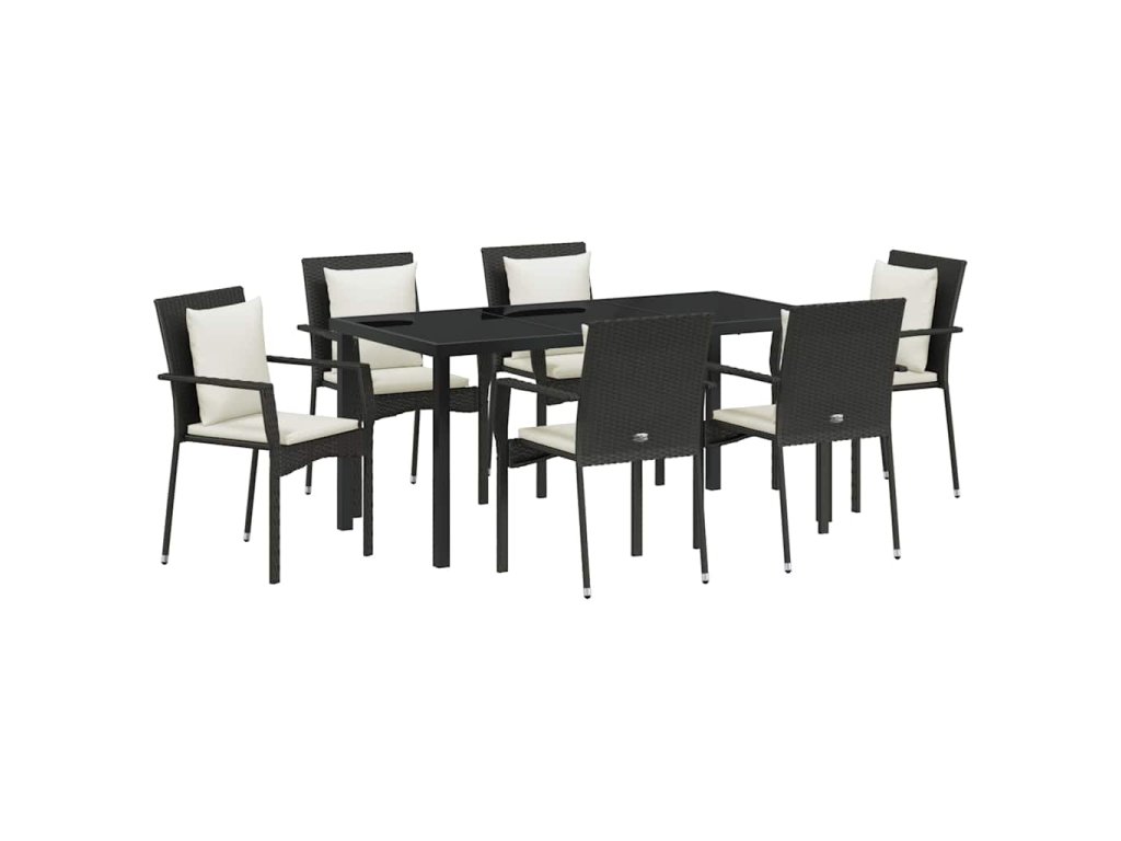 Zahradní jídelní souprava s polštářem 7 pcs Černá polyratan 3380075