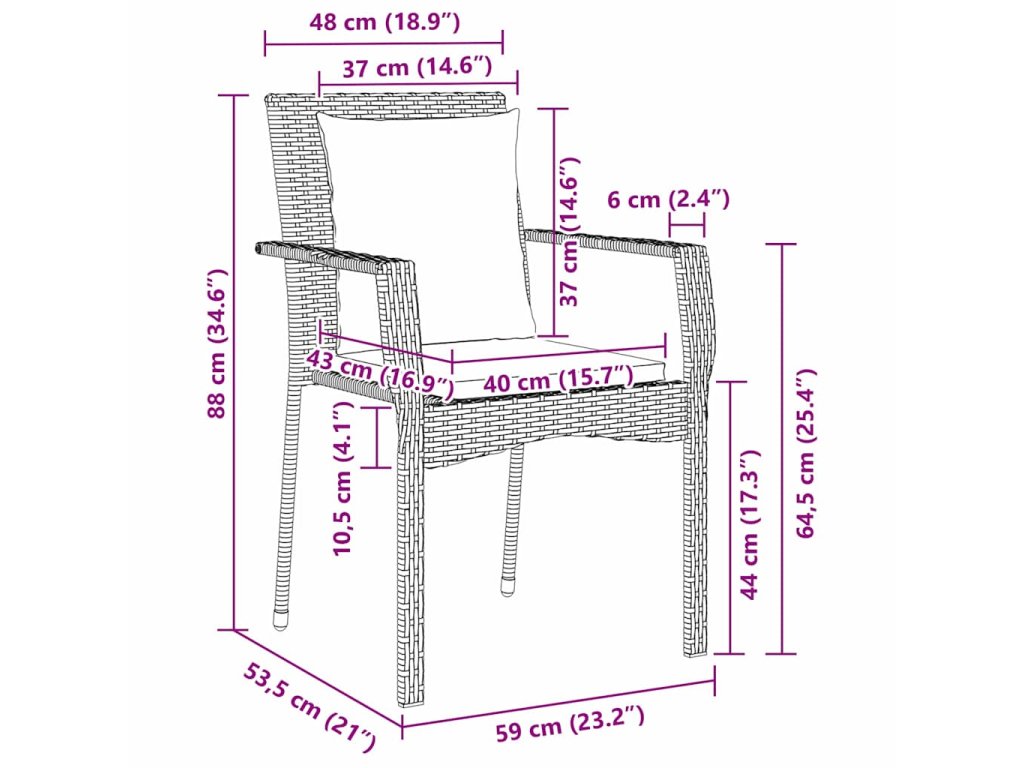 - 4 x zahradní židle: 59 x 53.5 x 88 cm (D x Š x V)