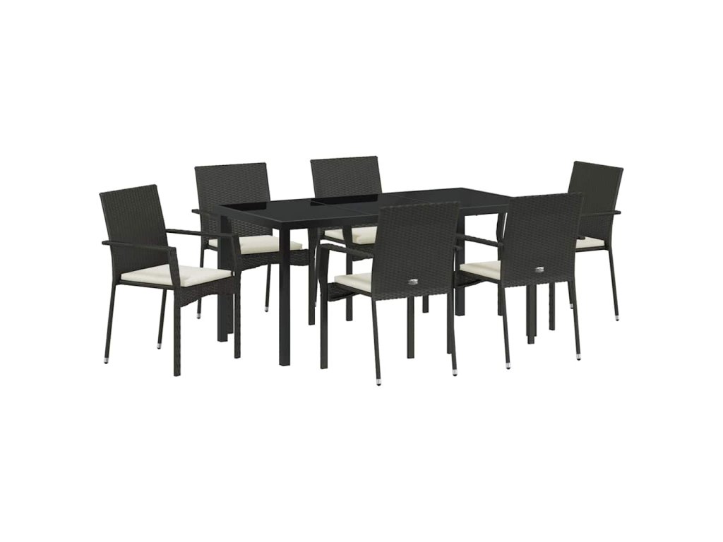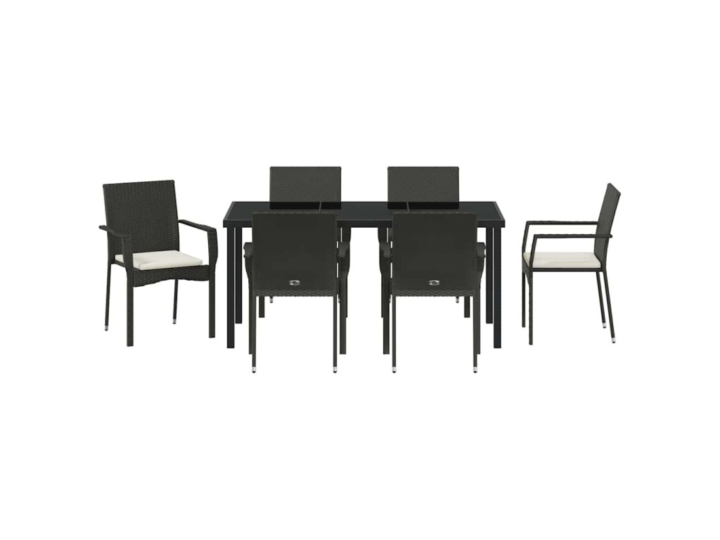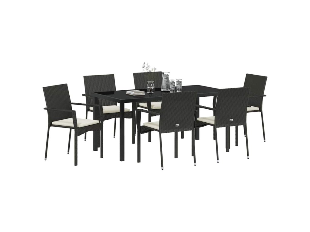Zahradní jídelní souprava s polštářem 7 pcs Černá polyratan 3380082