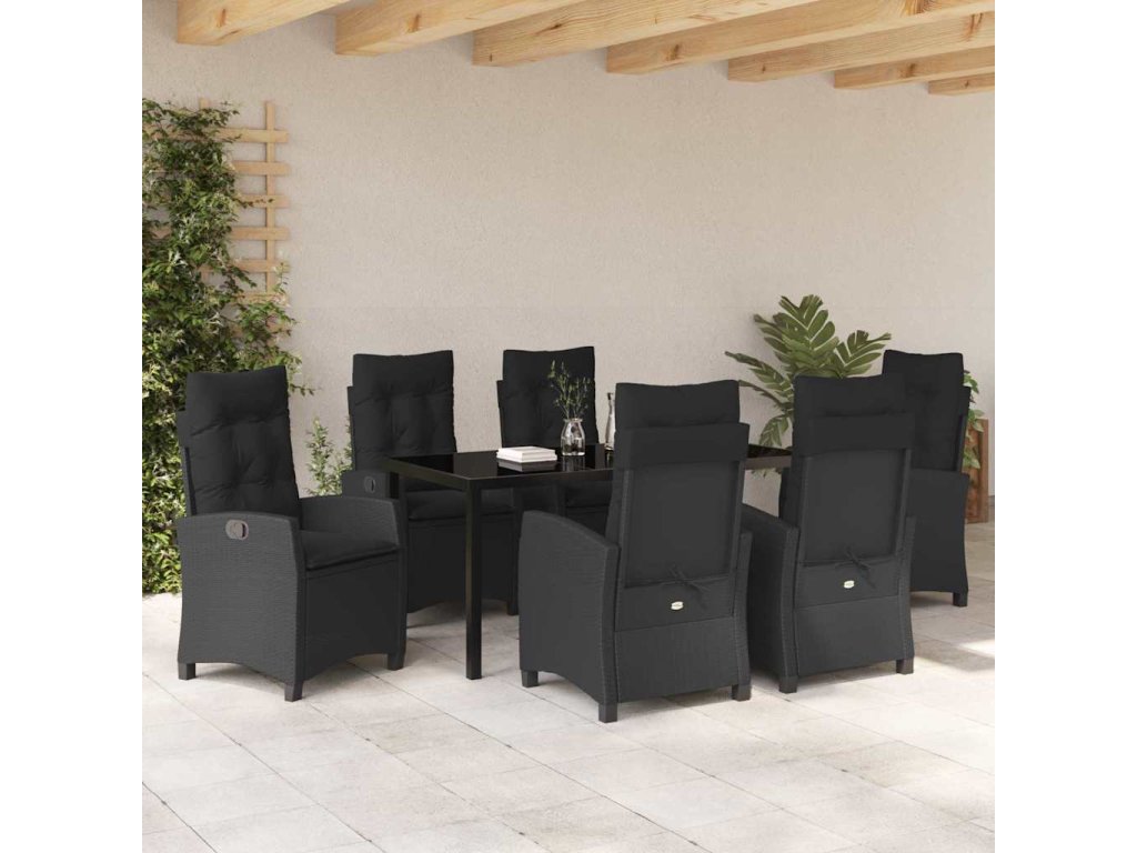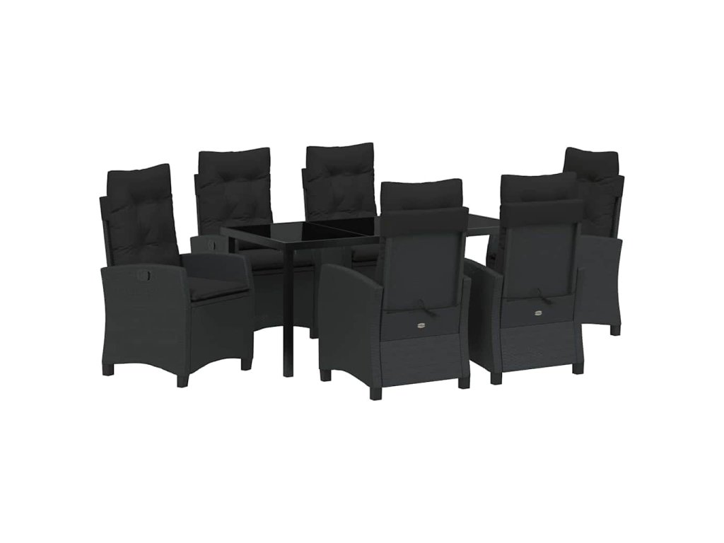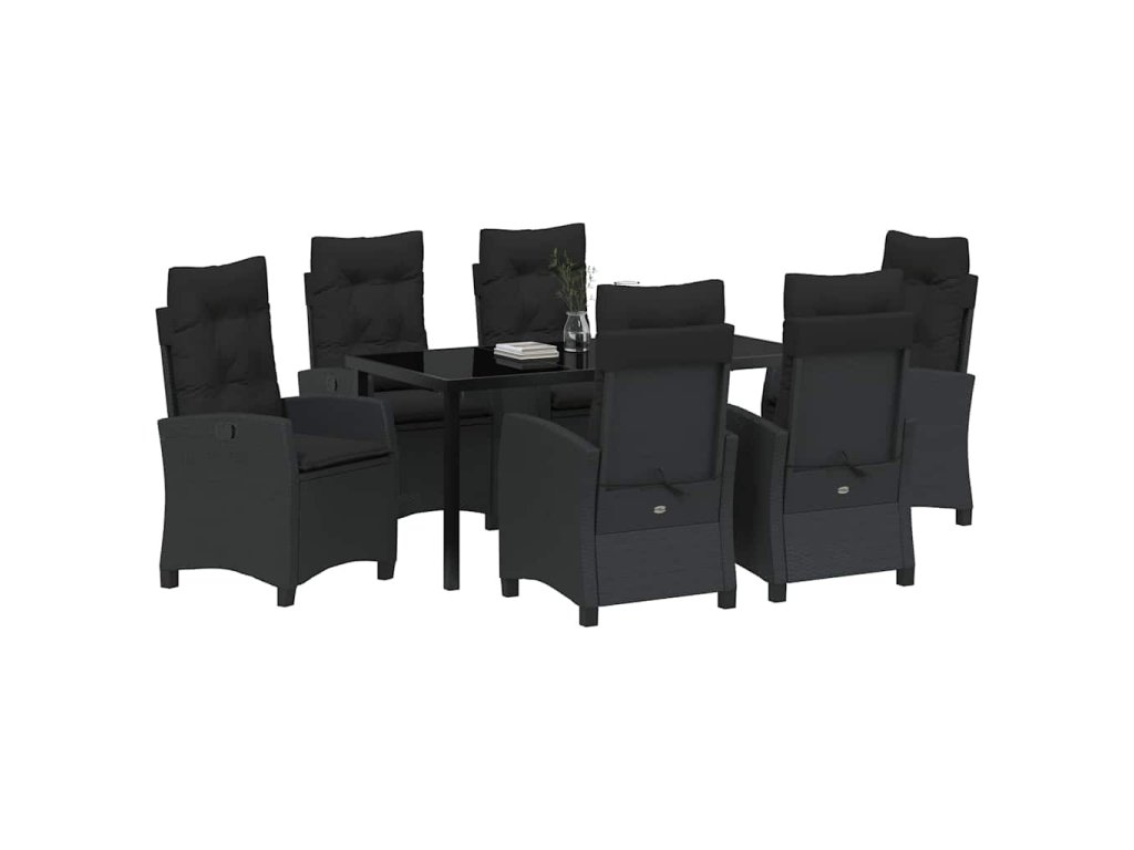 Zahradní jídelní souprava s polštářem 7 pcs Černá polyratan 3380376