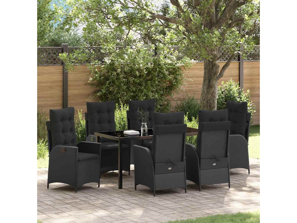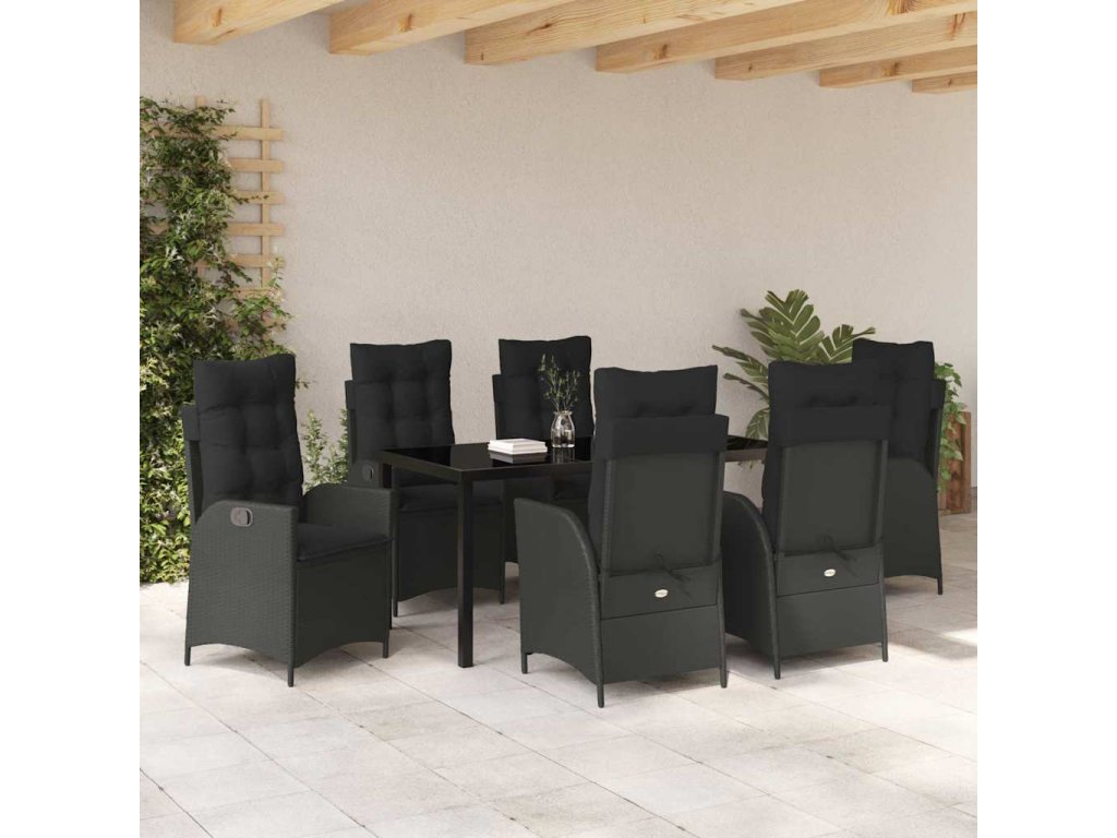 Zahradní jídelní souprava s polštářem 7 pcs Černá polyratan 3380488