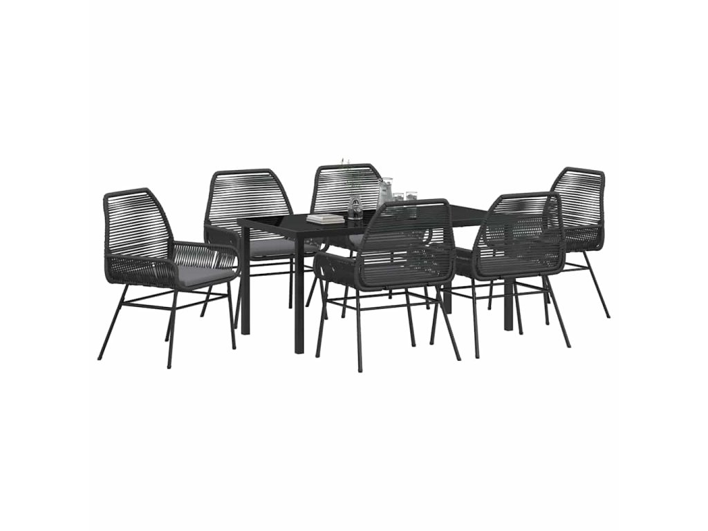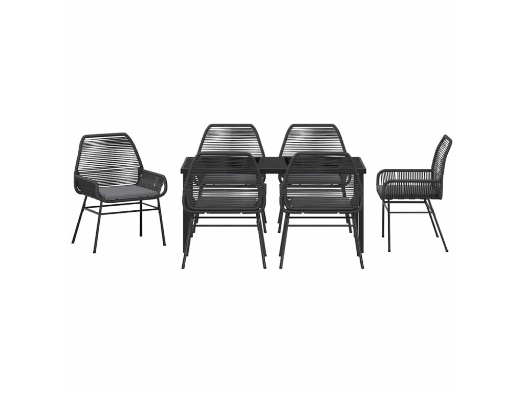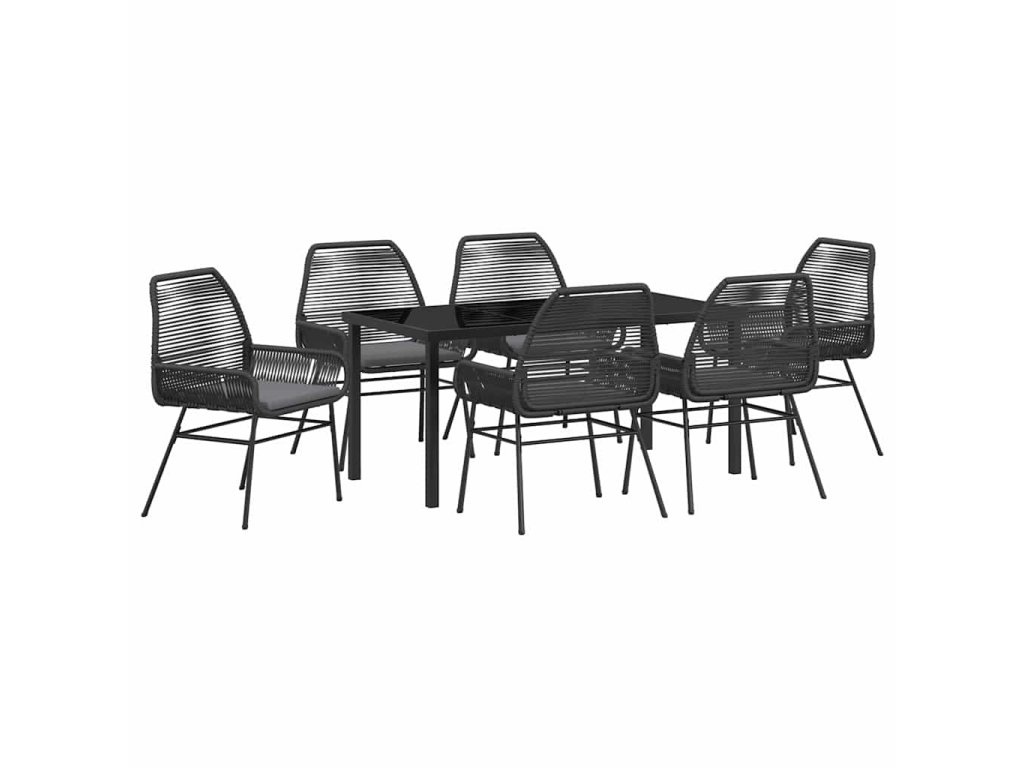 Zahradní jídelní souprava s polštářem 7 pcs Černá polyratan 3380873