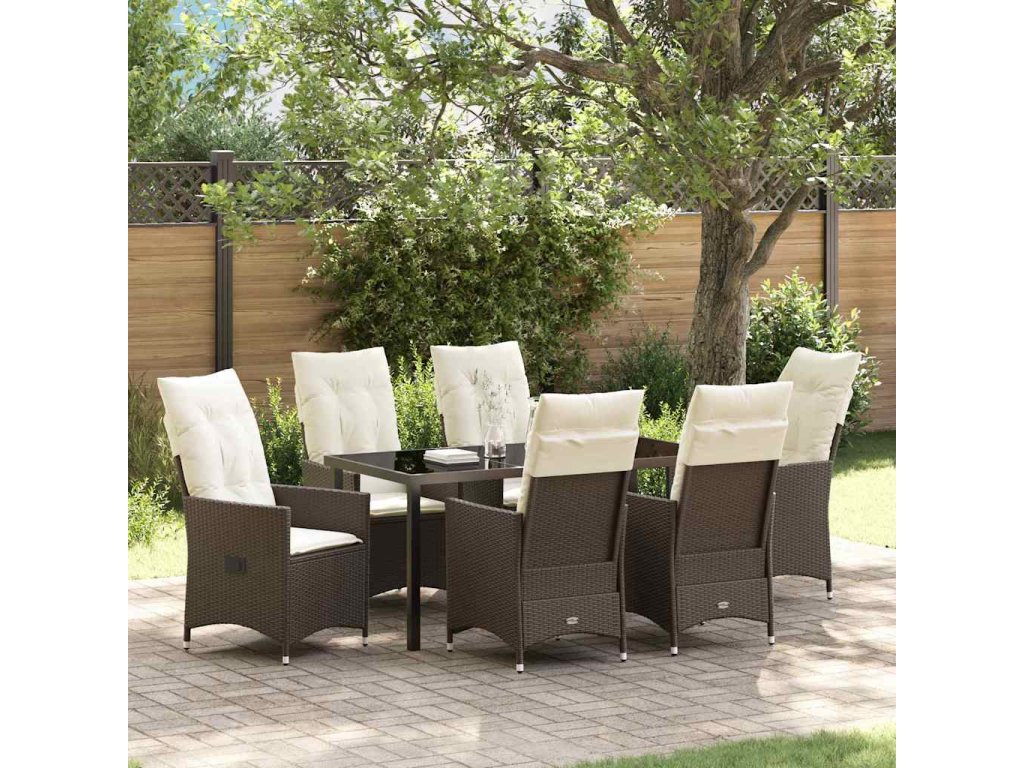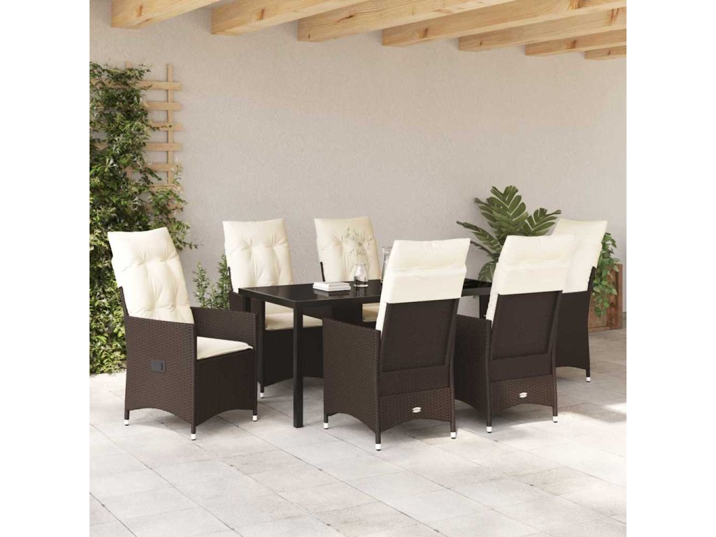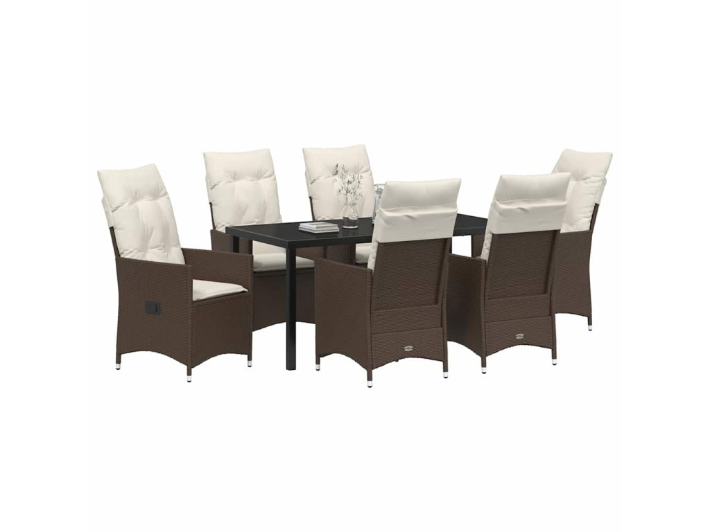 Zahradní jídelní souprava s polštářem 7 pcs Hnědá Poly ratan 3379545