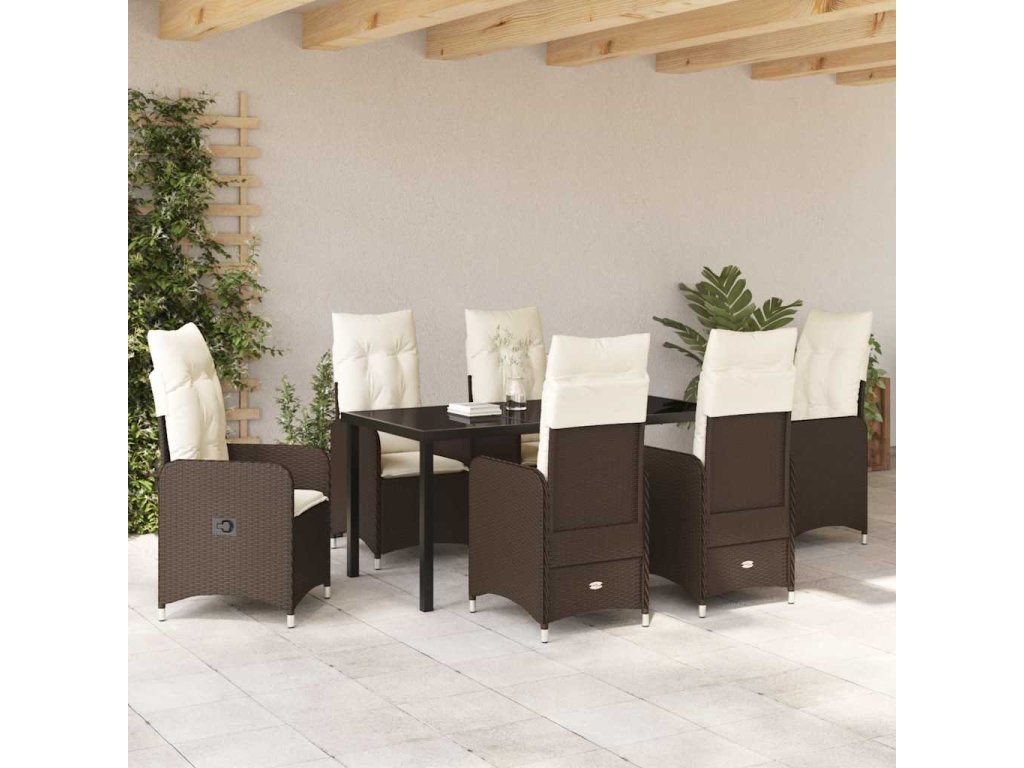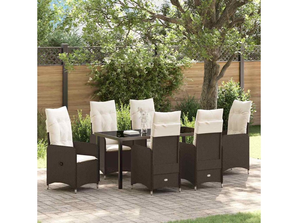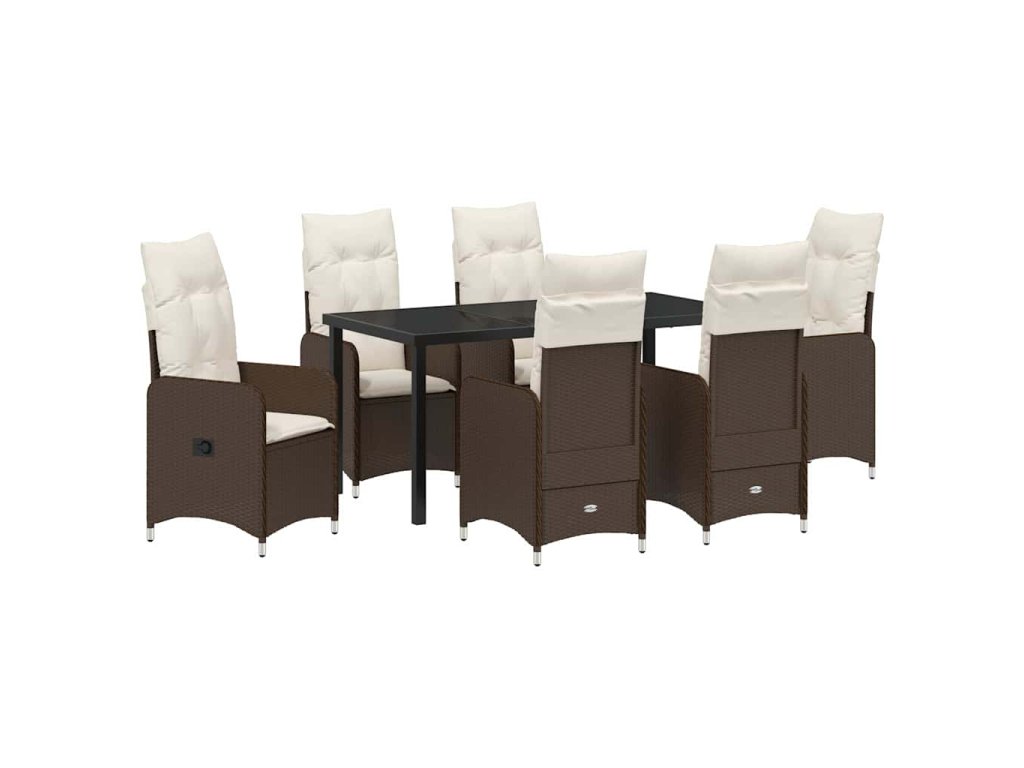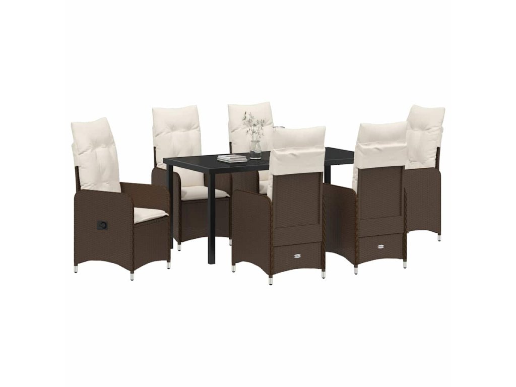 Zahradní jídelní souprava s polštářem 7 pcs Hnědá Poly ratan 3379643