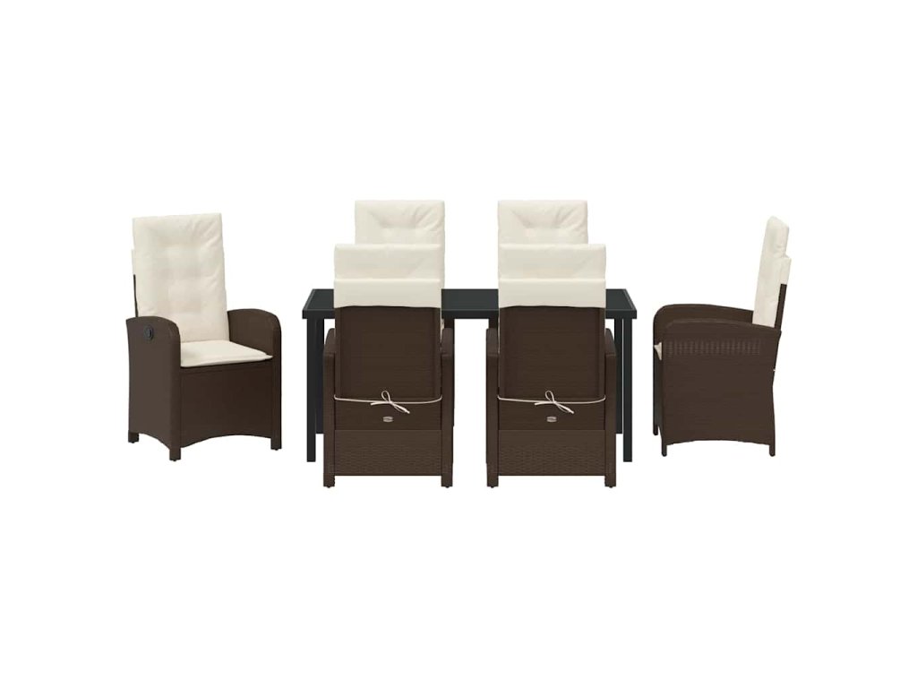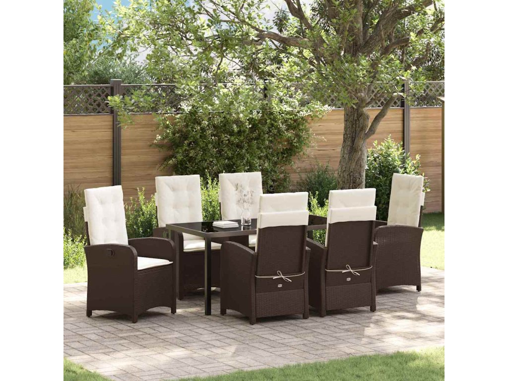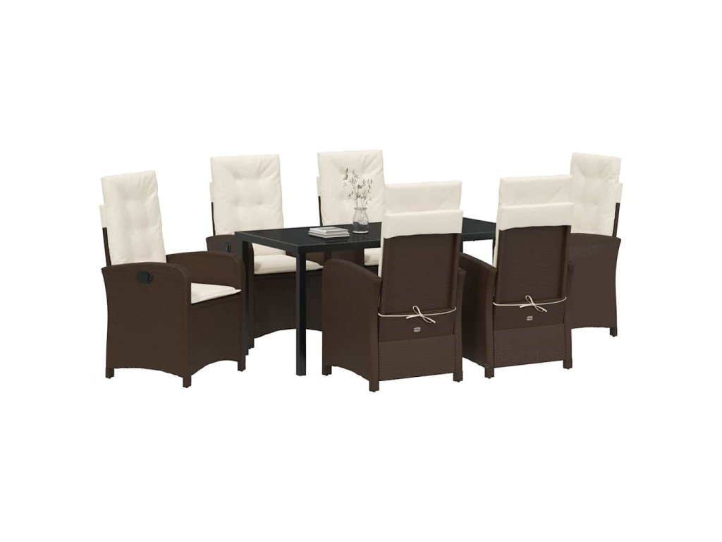 Zahradní jídelní souprava s polštářem 7 pcs Hnědá polyratan 3380271