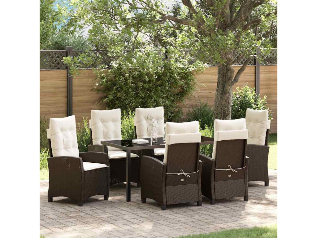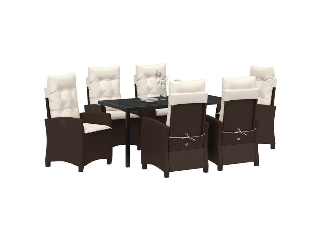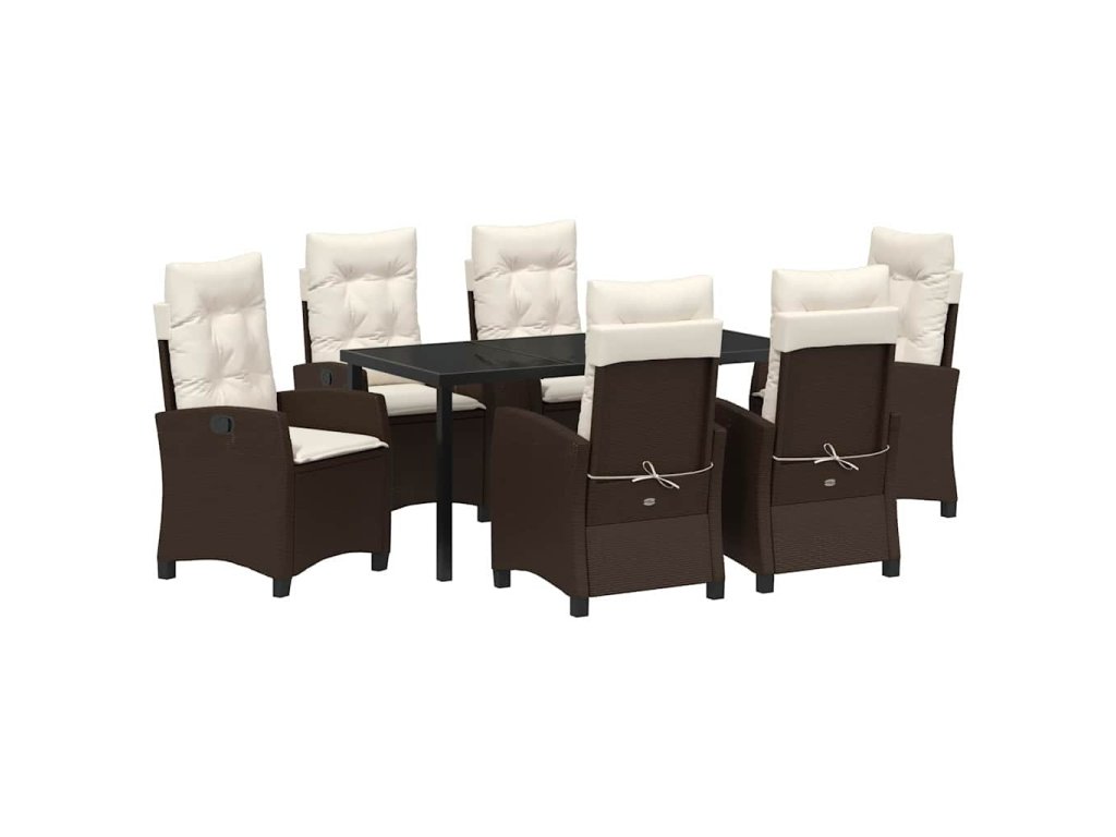 Zahradní jídelní souprava s polštářem 7 pcs Hnědá polyratan 3380383