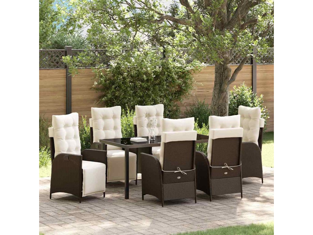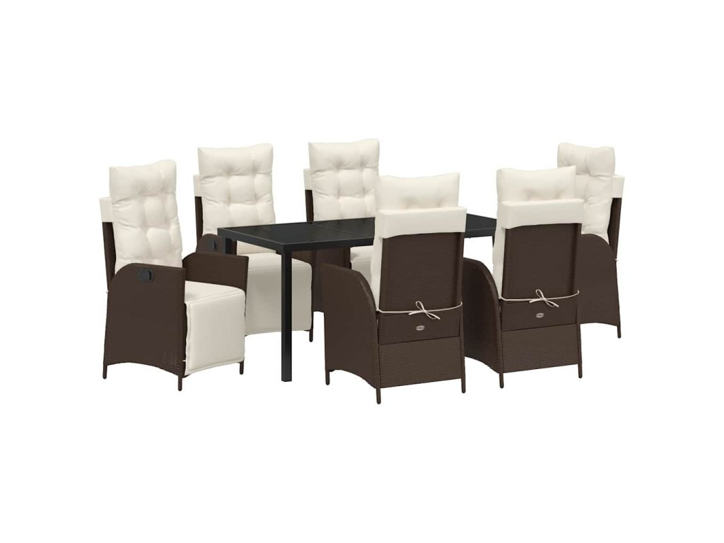 Zahradní jídelní souprava s polštářem 7 pcs Hnědá polyratan 3380544