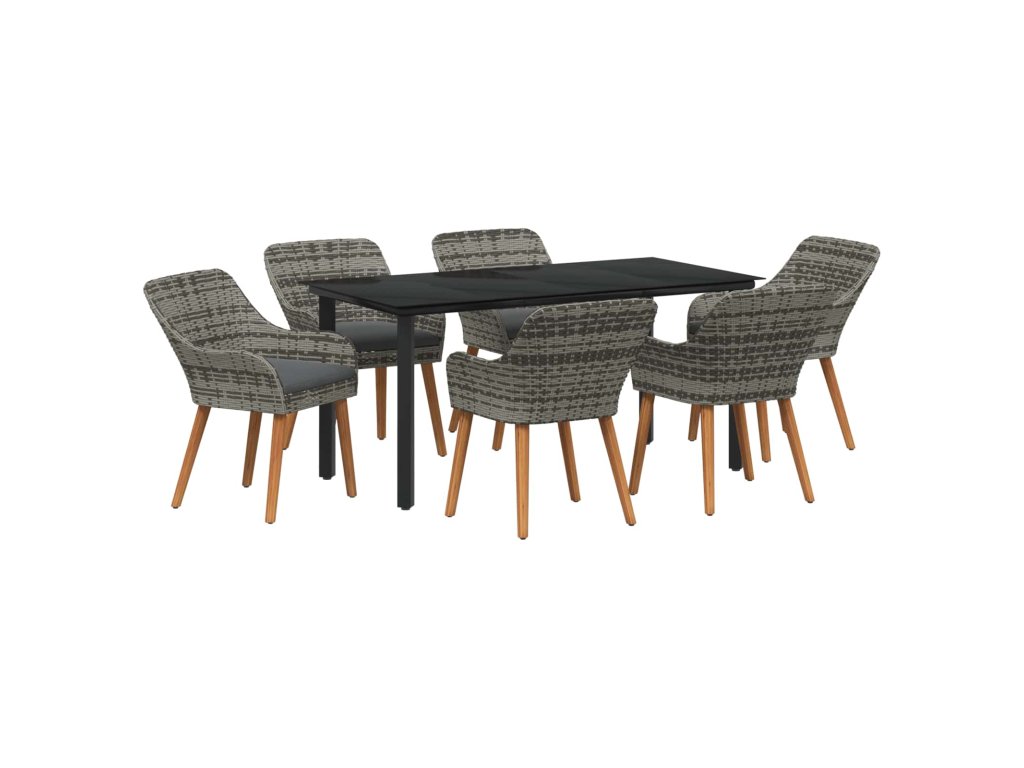 Zahradní jídelní souprava s polštářem 7 pcs Šedá polyratan 3261688