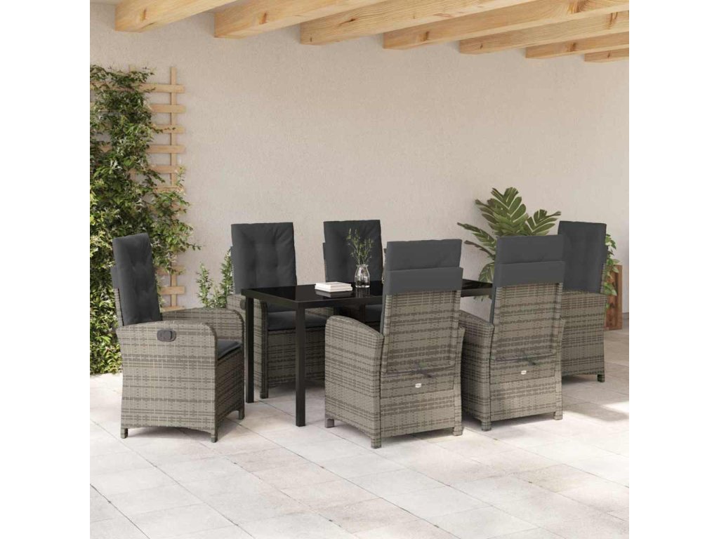 Zahradní jídelní souprava s polštářem 7 pcs Šedá polyratan 3380278