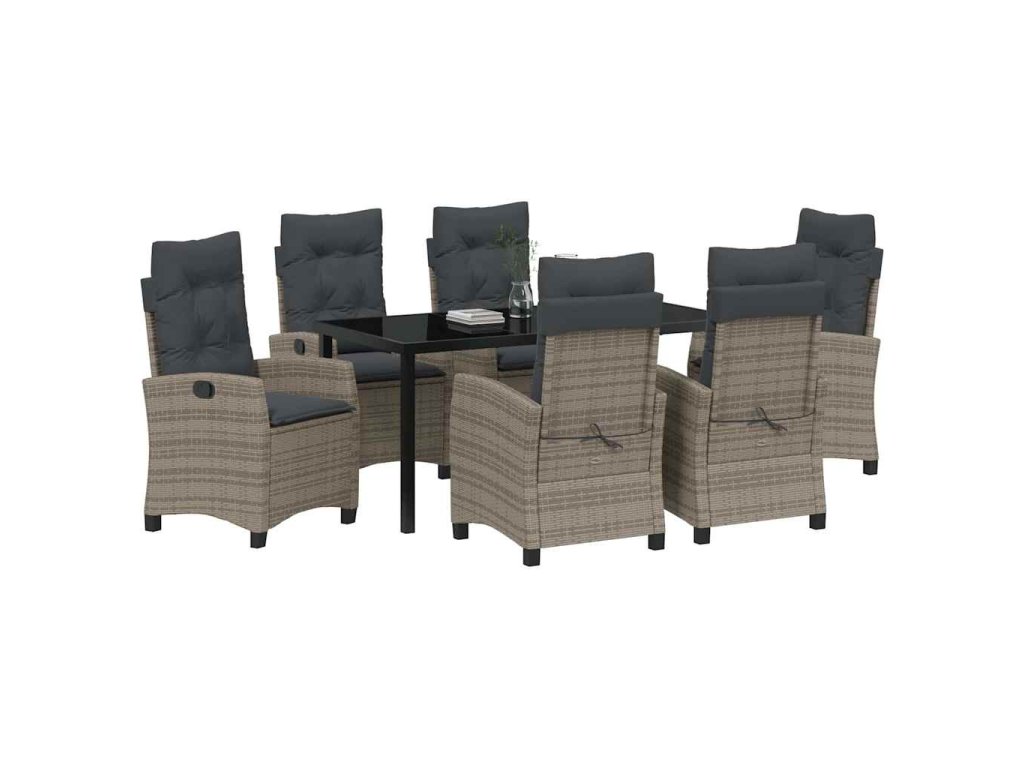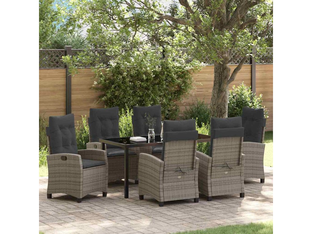 Zahradní jídelní souprava s polštářem 7 pcs Šedá polyratan 3380390