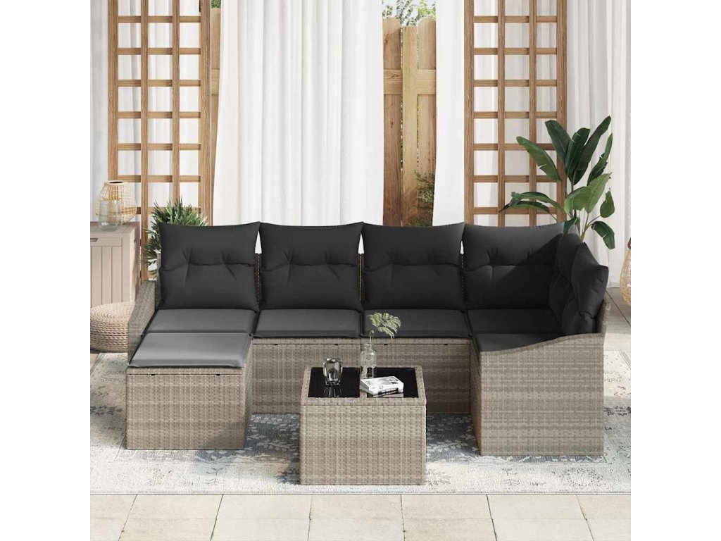 Zahradní jídelní souprava s polštářem 7 pcs Světle šedá 3355471