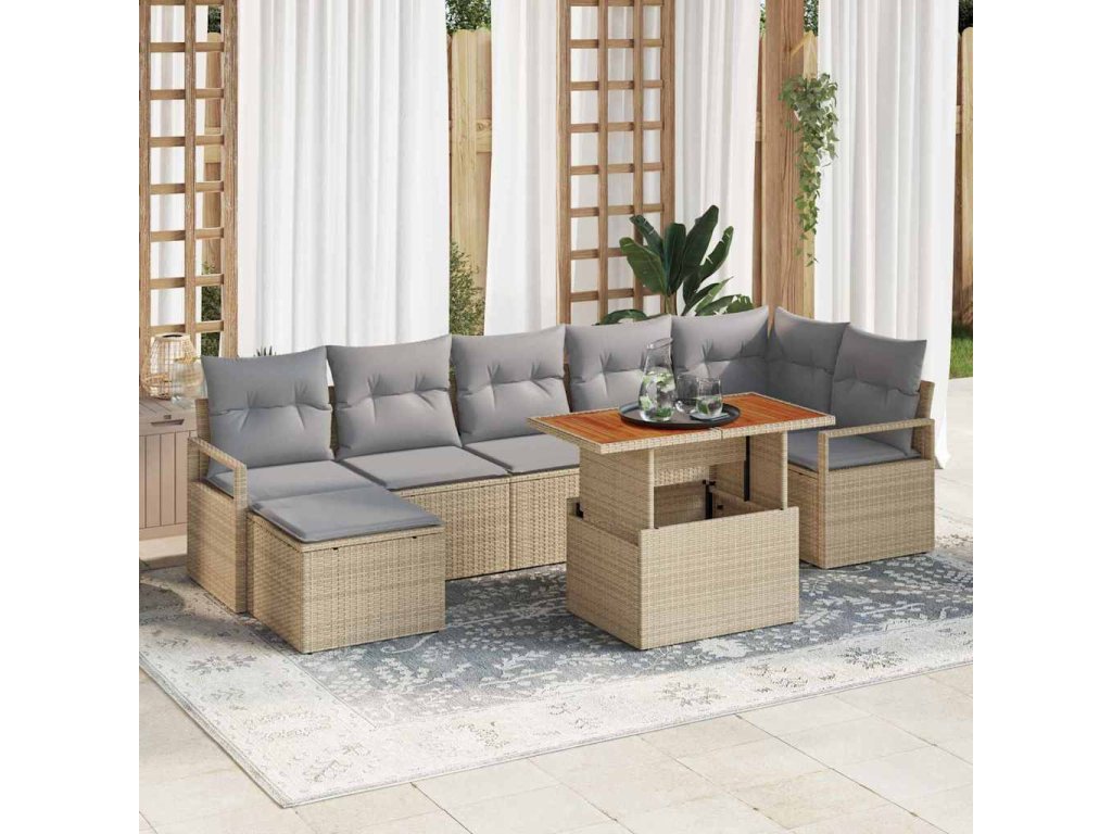 Zahradní jídelní souprava s polštářem 8 pcs Beige a šedá 3349741