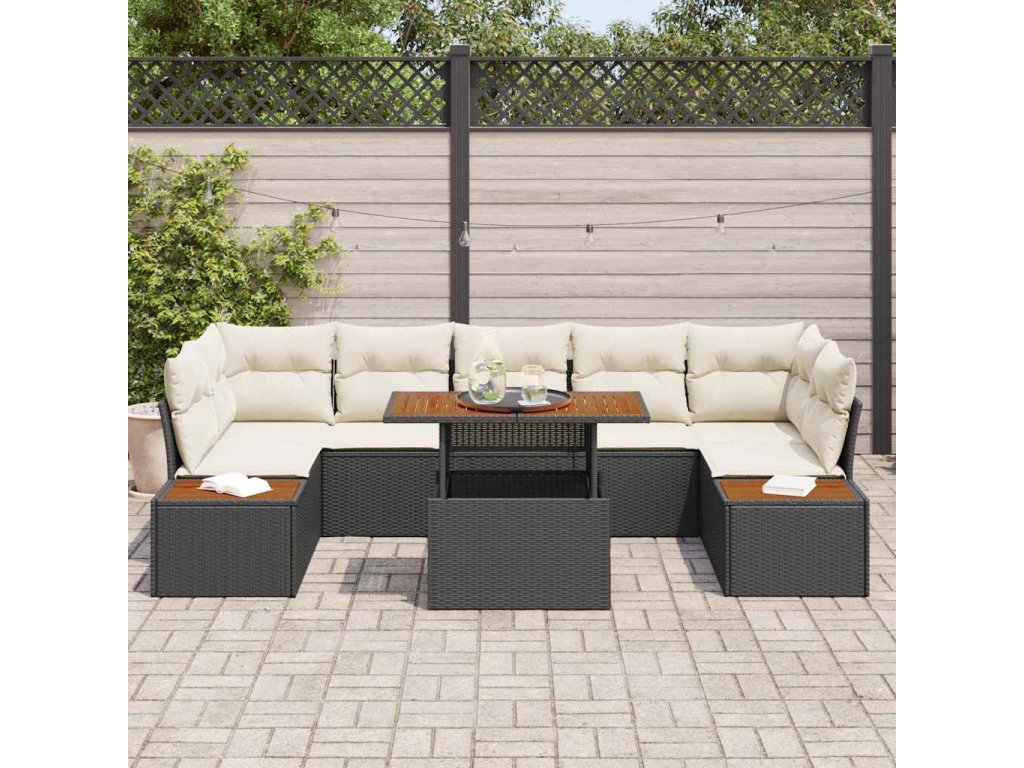 Zahradní jídelní souprava s polštářem 8 pcs Černá a béžová 3350044