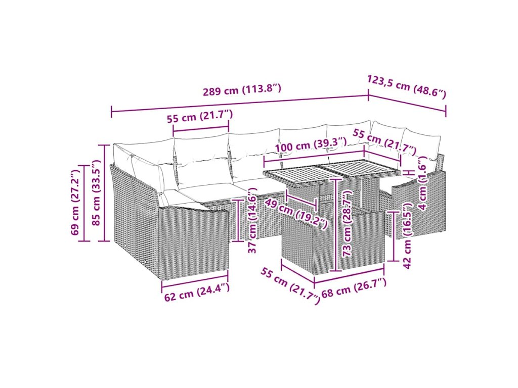 Tato polyratanová zahradní jídelní sada nabízí ohromující spojení stylu a funkčnosti pro váš venkovní ráj. Navržená pro moderní zahrady, tato sada vyzařuje jednoduchost a efektivitu s minimálními ozdobami. Její štíhlé linie a modulární design vás vybízejí k vytváření přizpůsobitelného prostoru k sezení, který vyhovuje vašim potřebám zábavy. Představte si jasné slunečné dny relaxující na terase s knihou v ruce nebo hostující zahradní párty s přáteli jako středisko společenského života.