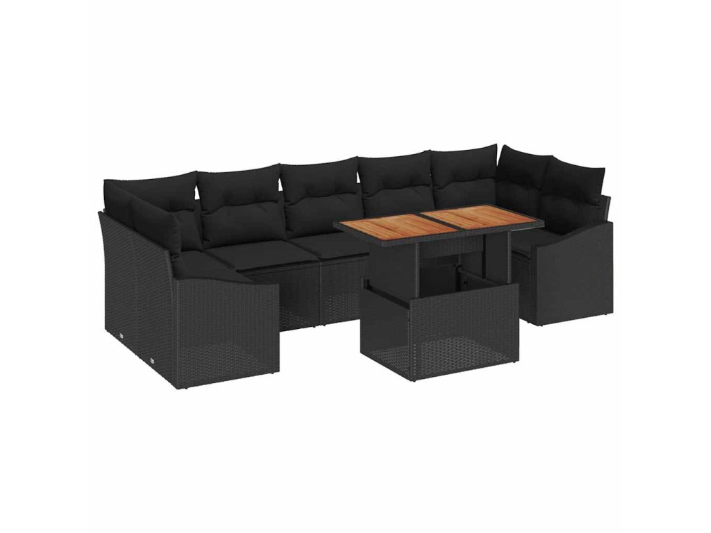 Zahradní jídelní souprava s polštářem 8 pcs Černá a hnědá 3349806