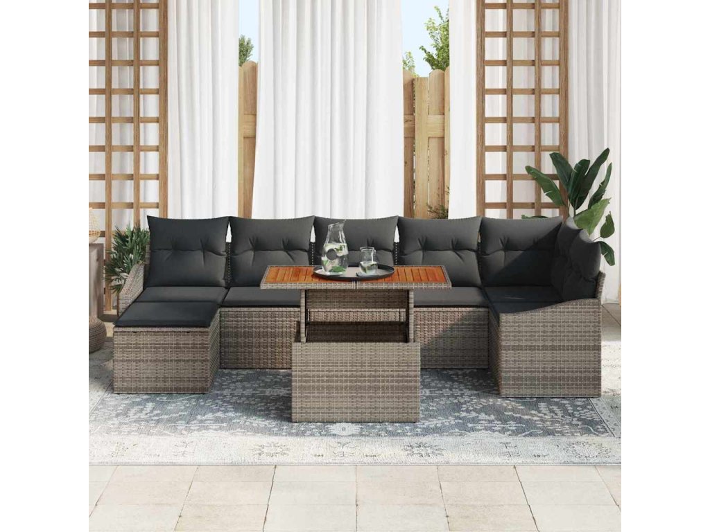 - Praktické komponenty: Vybavena modulárními komponenty, včetně sedadel s úložnými funkcemi a stolu z masivního akáciového dřeva, tato jídelní sada nabízí praktičnost, aniž by obětovala styl. Polyratanové opěrky rukou a udržované zadní části poskytují podporu a ergonomické pohodlí, zatímco poskytované pěnové polštáře nabízejí měkké sezení, čímž zajišťují prodloužené pohodlí během dlouhých jídel nebo rozhovorů.