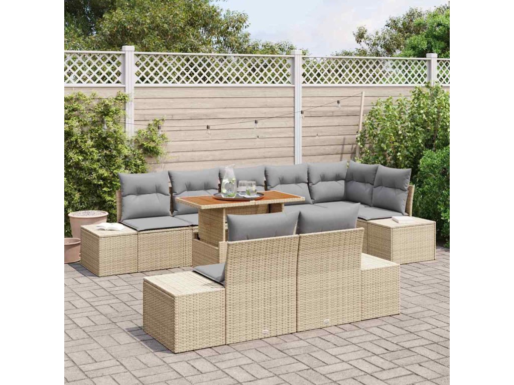 Zahradní jídelní souprava s polštářem 9 pcs Beige a šedá 3349979