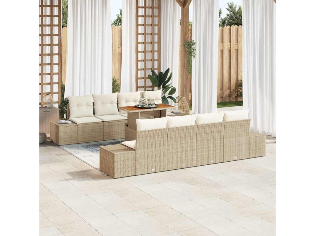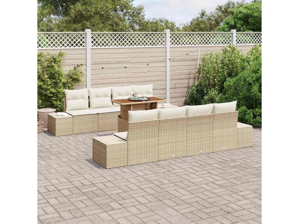 Zahradní jídelní souprava s polštářem 9 pcs Béžová a krémová 3349938