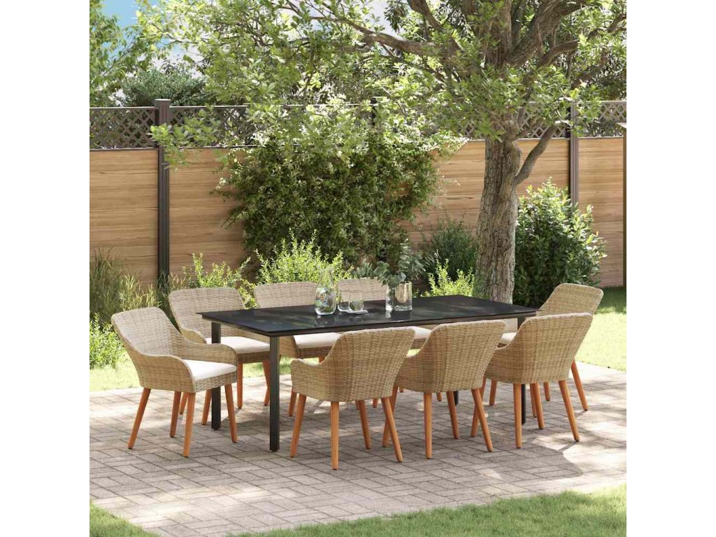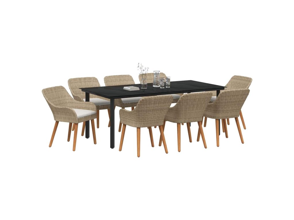 Zahradní jídelní souprava s polštářem 9 pcs Béžová polyratan 3261704