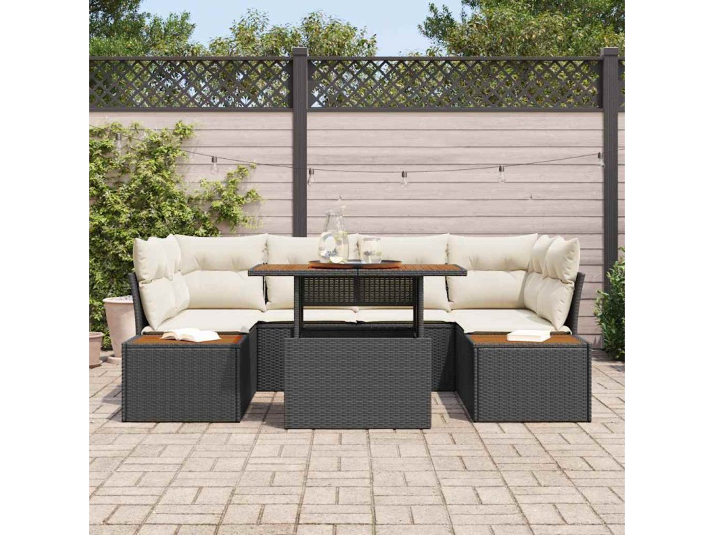 Zahradní jídelní souprava s polštářem 9 pcs Černá a béžová 3350034