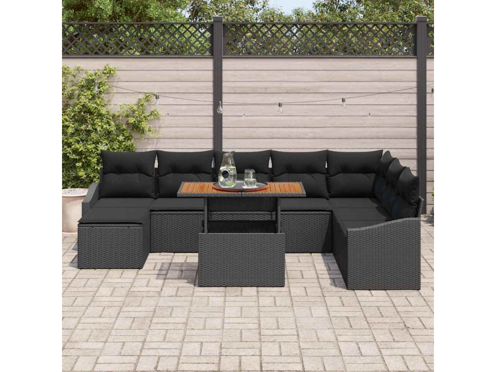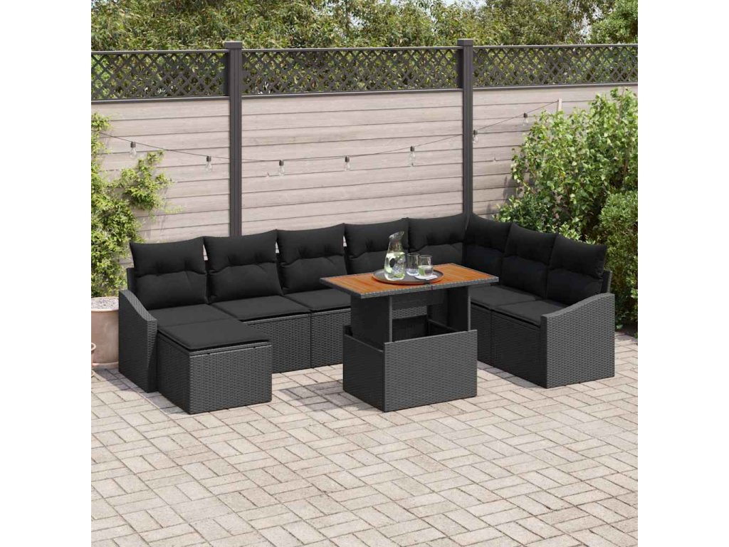 Zahradní jídelní souprava s polštářem 9 pcs Černá a hnědá 3349876